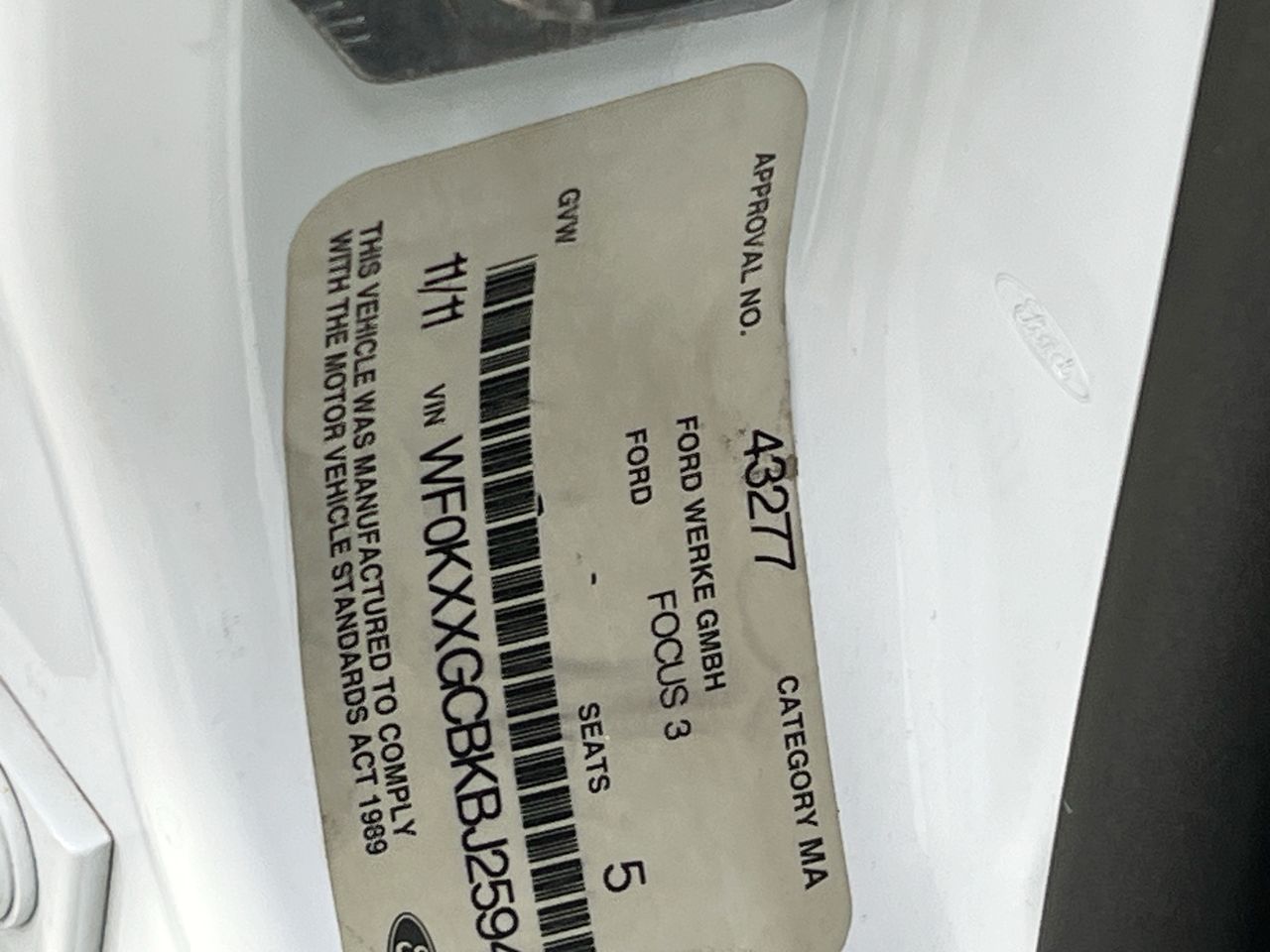• VIN: WF0KXXGCBKBJ25944