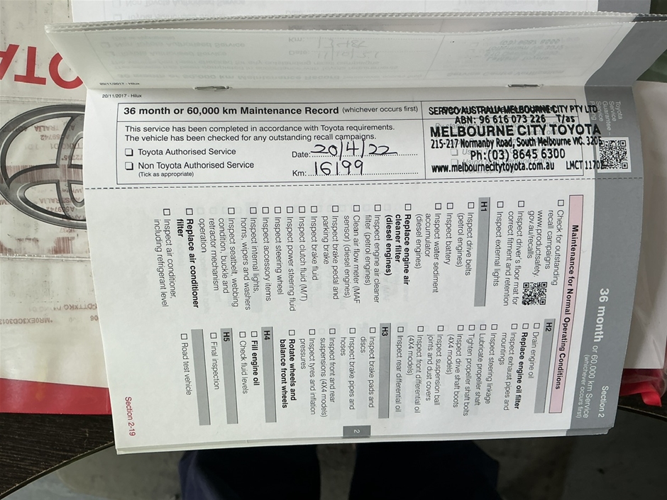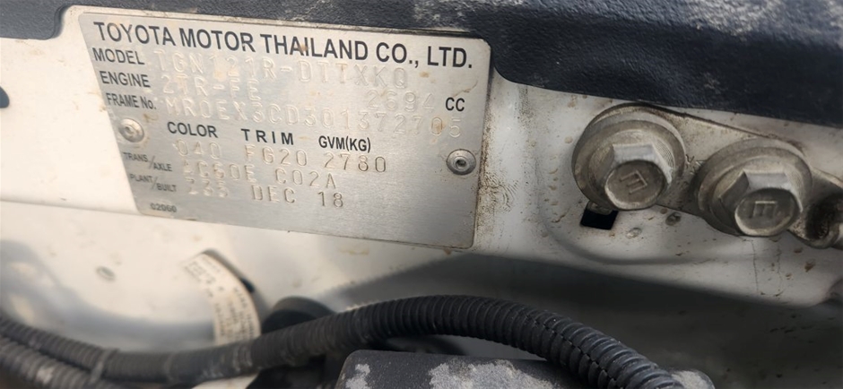 | Part of Sale | 2019 Toyota Hilux 4X2 WORKMATE Automatic Dual Cab | ||||||||||||||