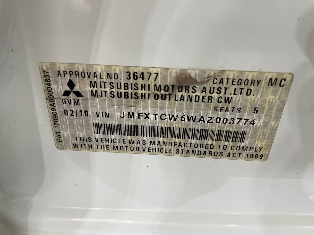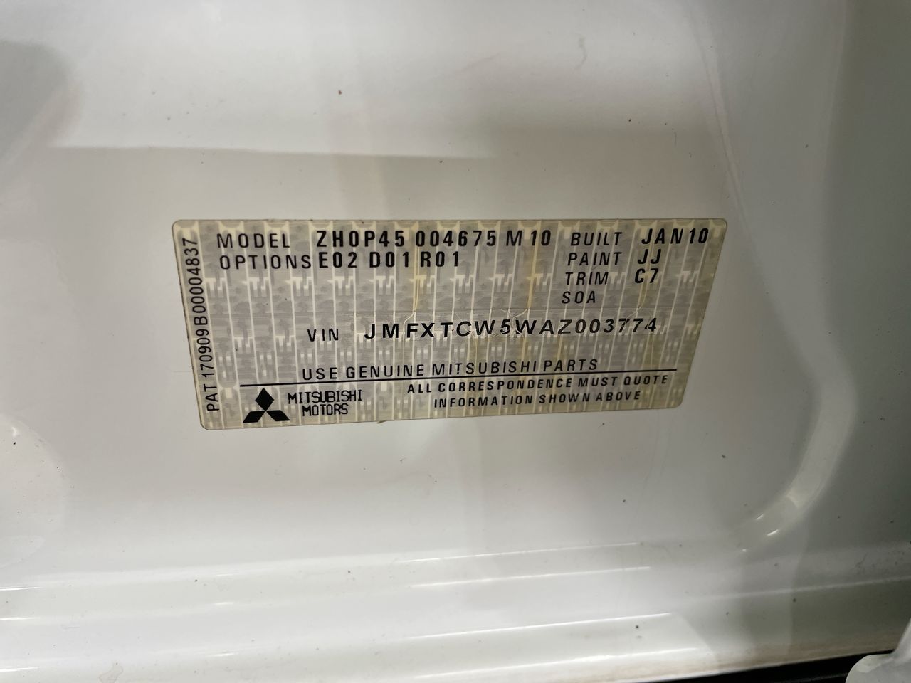 • VIN: JMFXTCW5WAZ003774