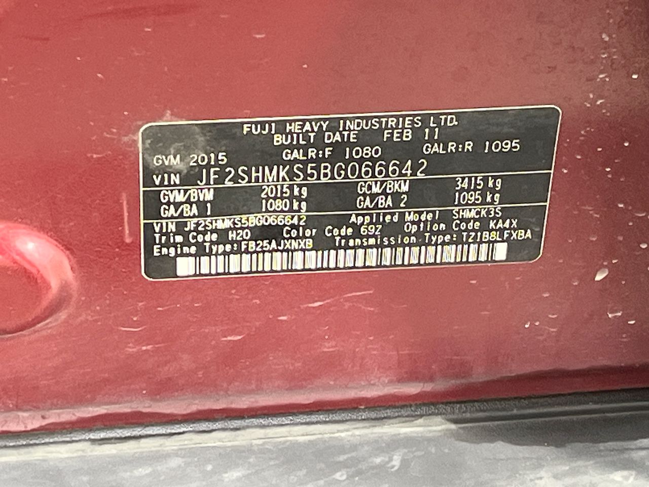 • VIN: JF2SHMKS5BG066642