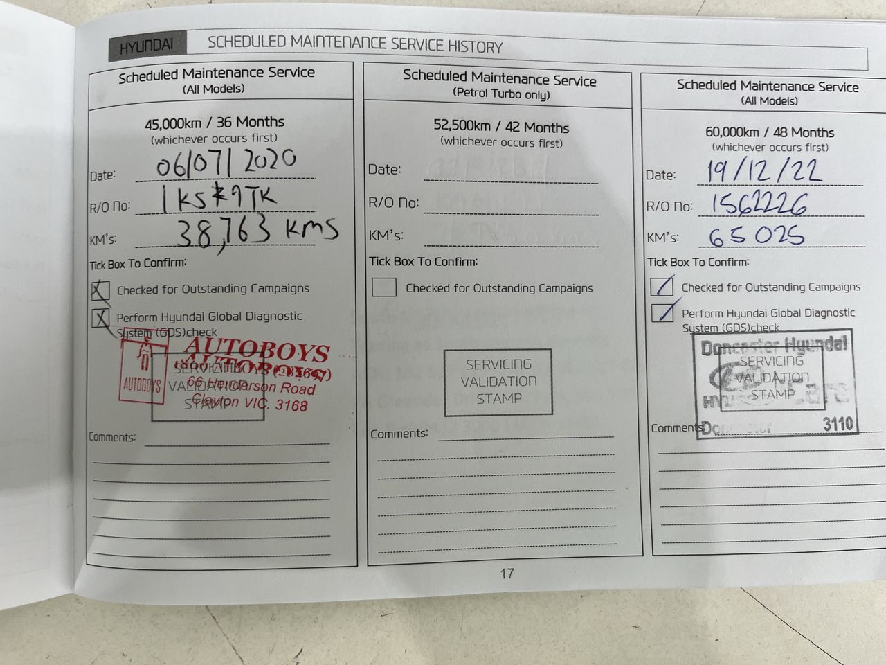 • Dents or marks on body consistent with age and kilometres.