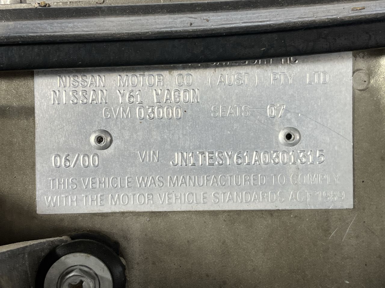 (SN:JN1TESY61A0301315) (122290-7)