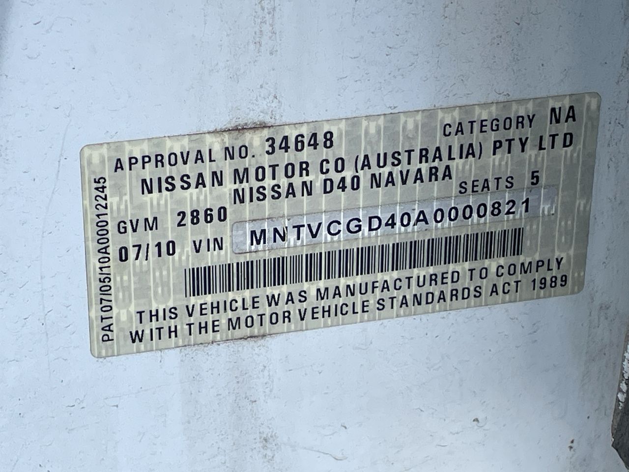 Part of Sale 2010 Nissan Navara RX 4X2 DOUBLE CAB D40 Turbo Diesel Manual