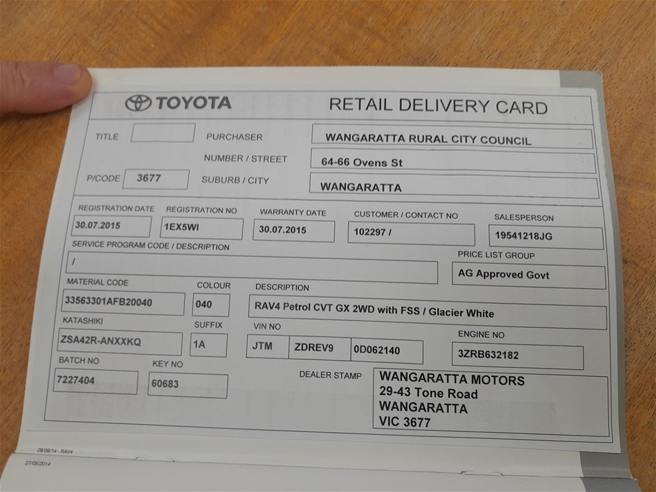 | Part of Sale | 2015 Toyota Rav 4 FWD GX ZSA42R CVT Wagon (EX-GOV) | ||||||||||||||
