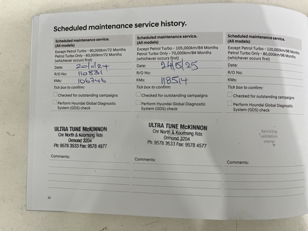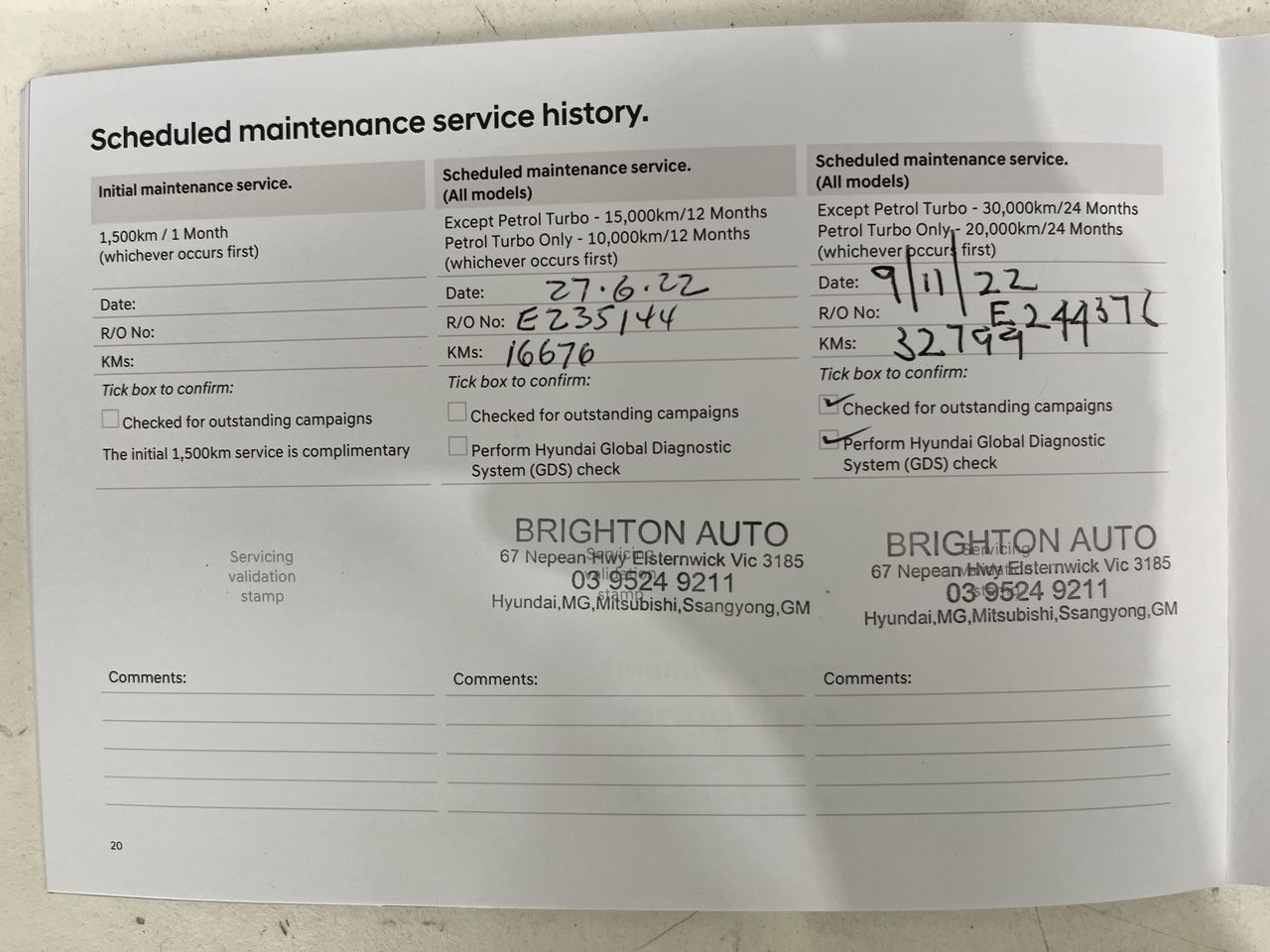 • Dents or marks on body consistent with age and kilometres.