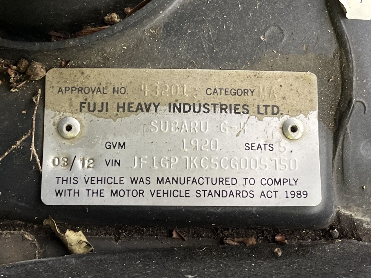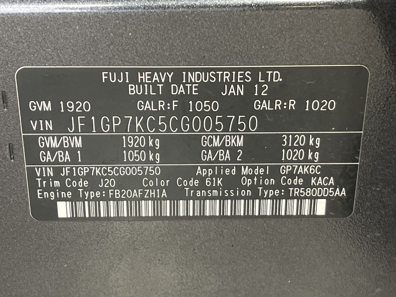 • VIN: JF1GP7KC5CG005750