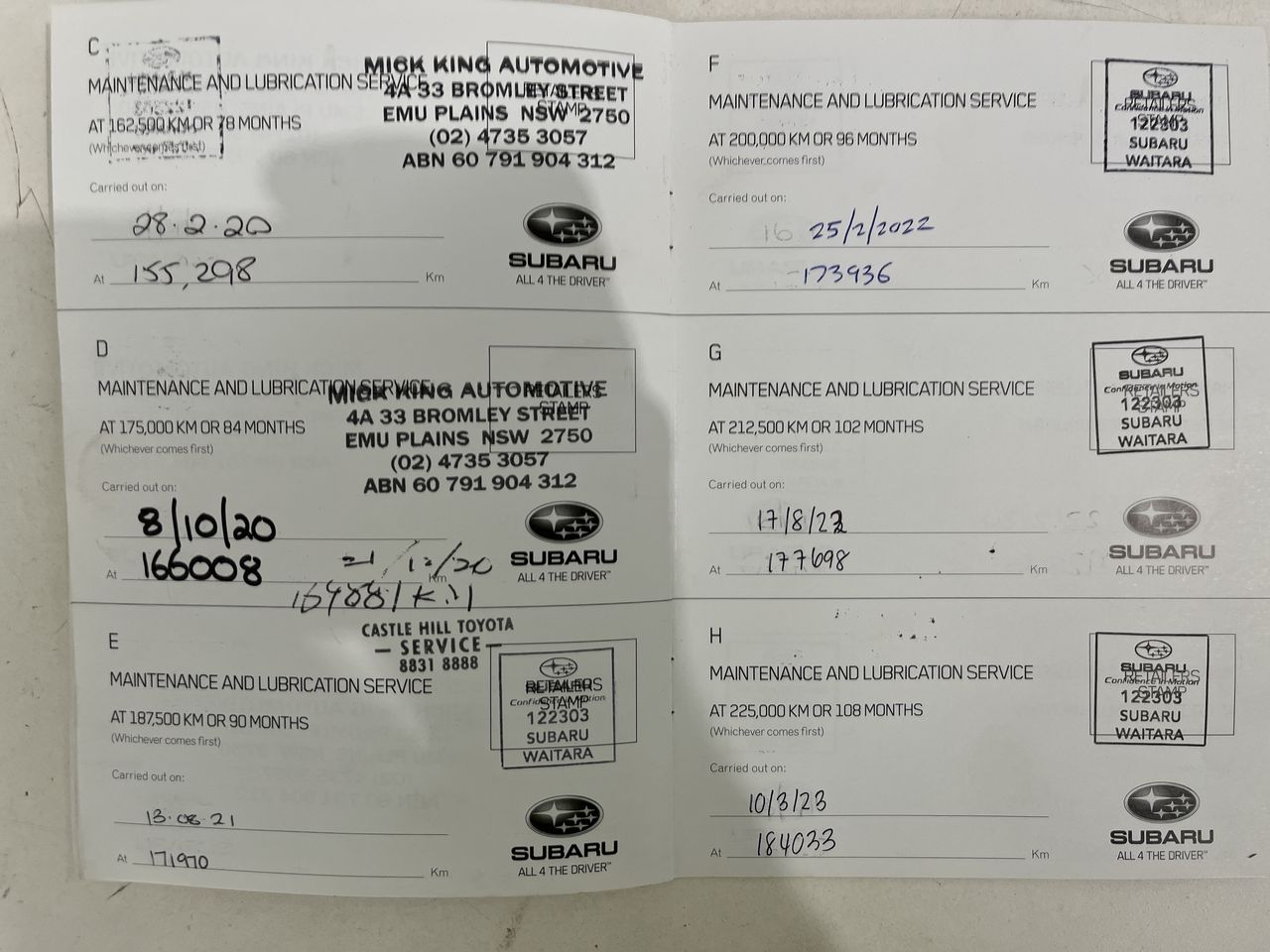 • Dents or marks on body consistent with age and kilometres.