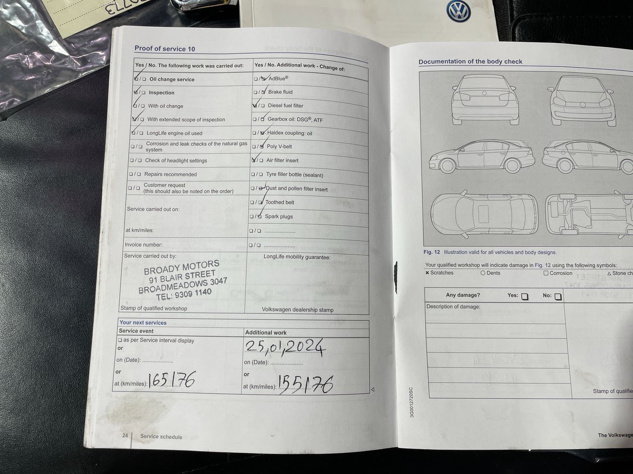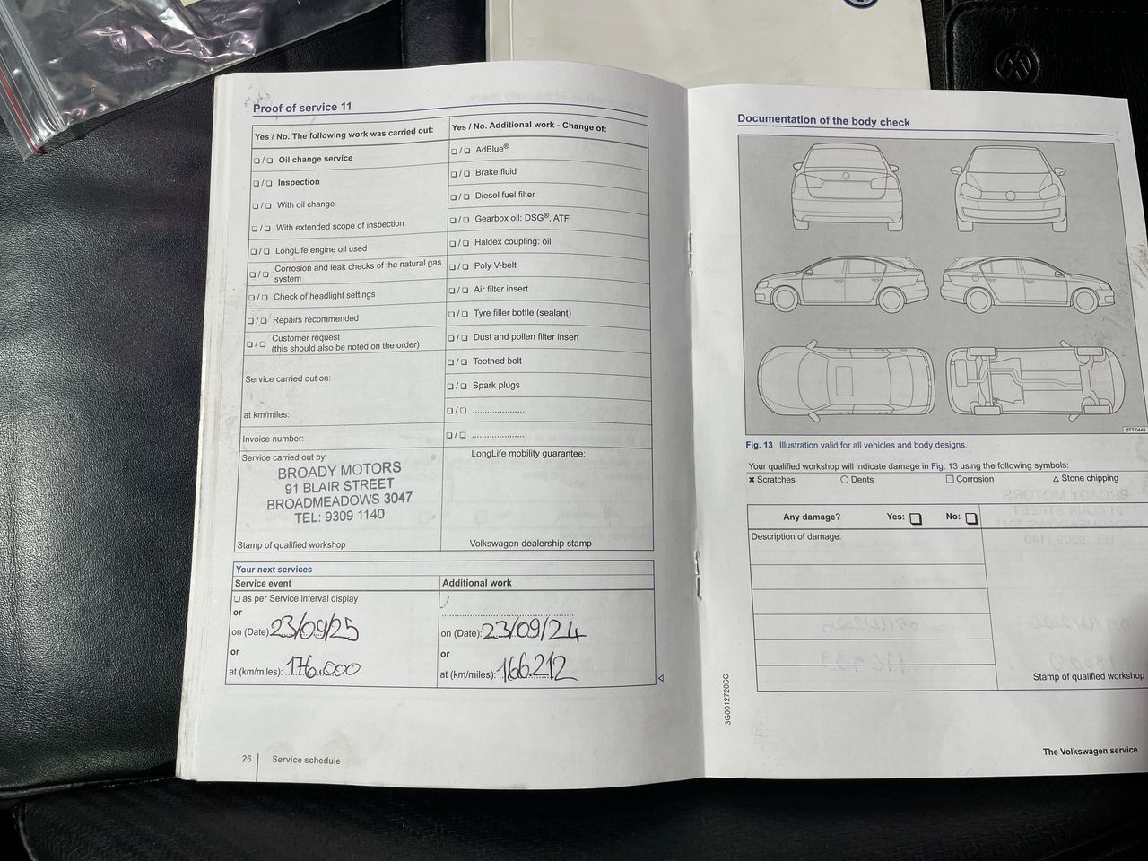 • Dents or marks on body consistent with age and kilometres.