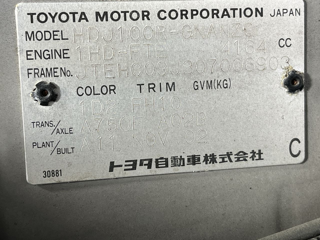 (SN:JTEHC09J307006903) (135787-564)