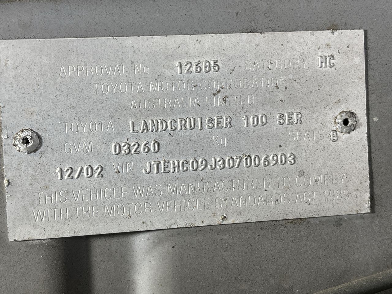 • VIN: JTEHC09J307006903