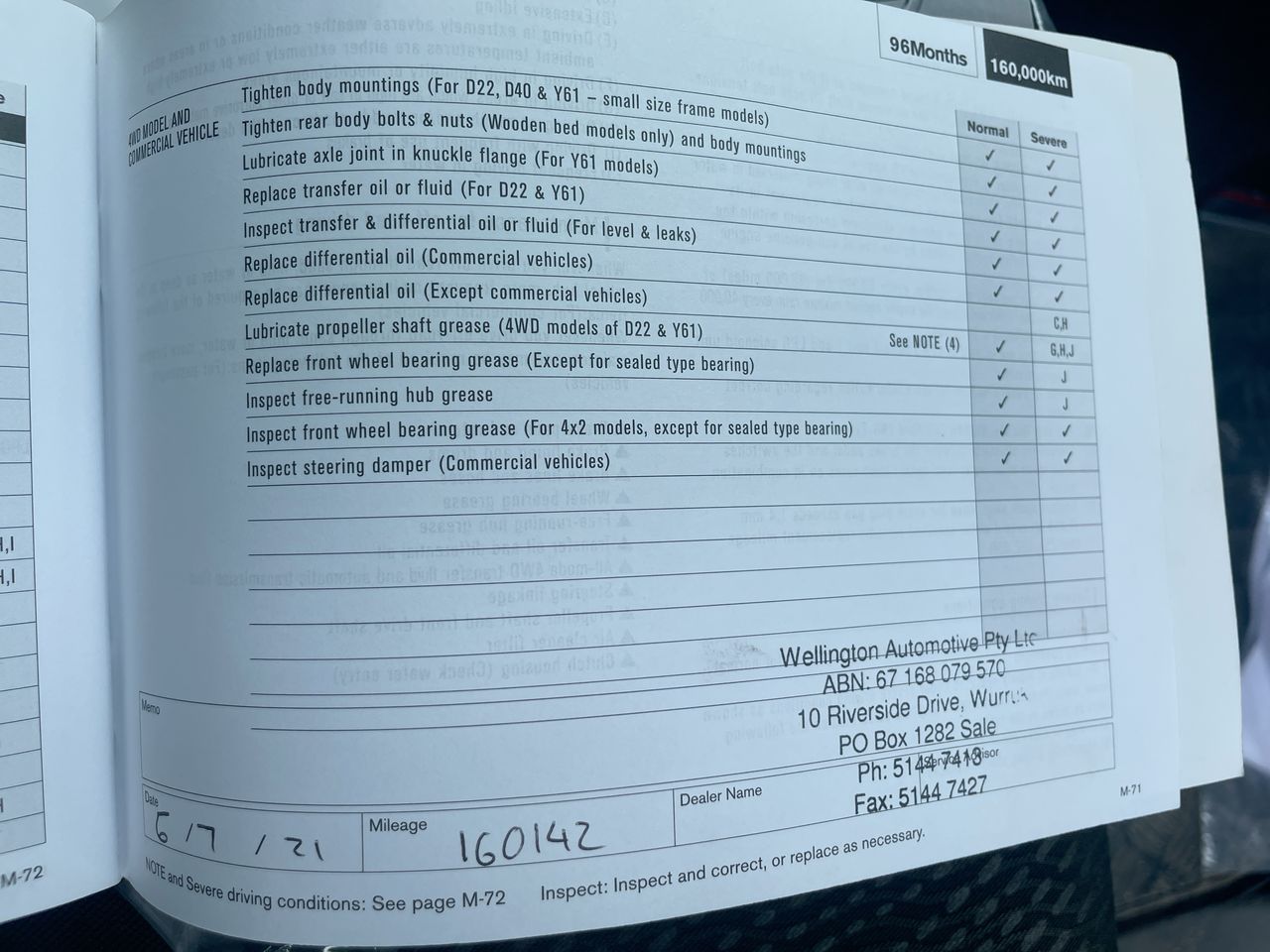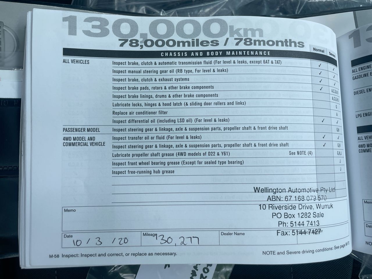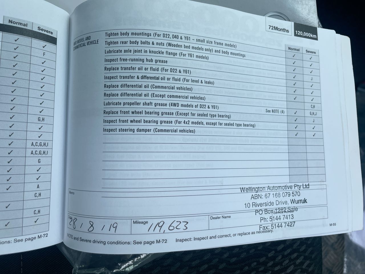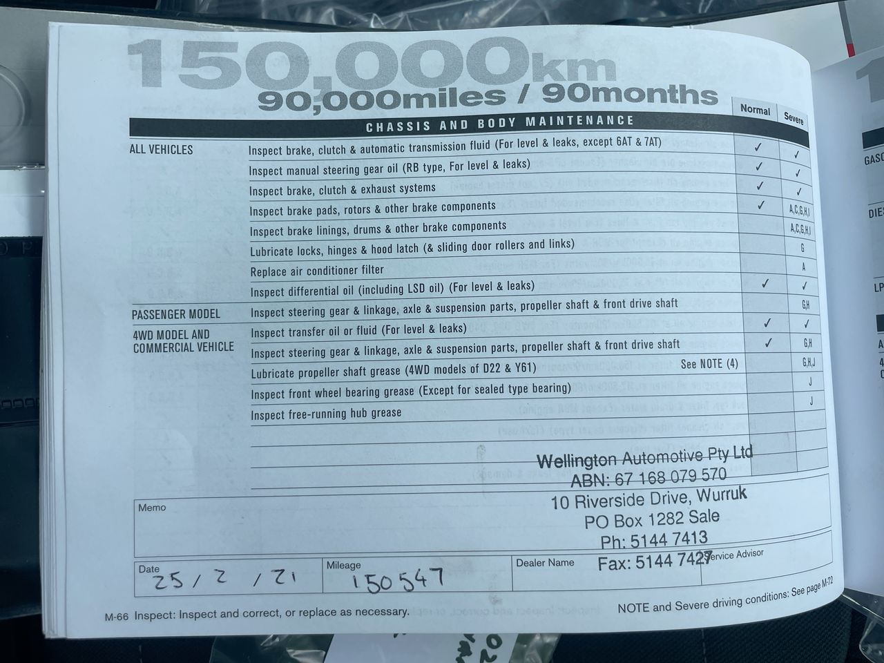 • Dents or marks on body consistent with age and kilometres.