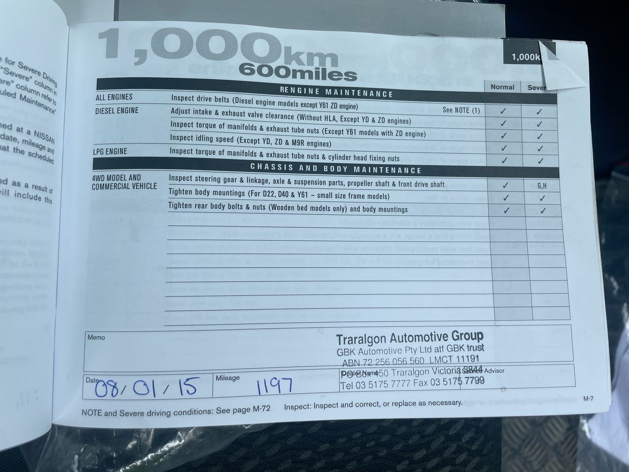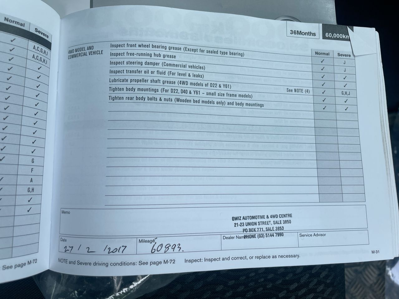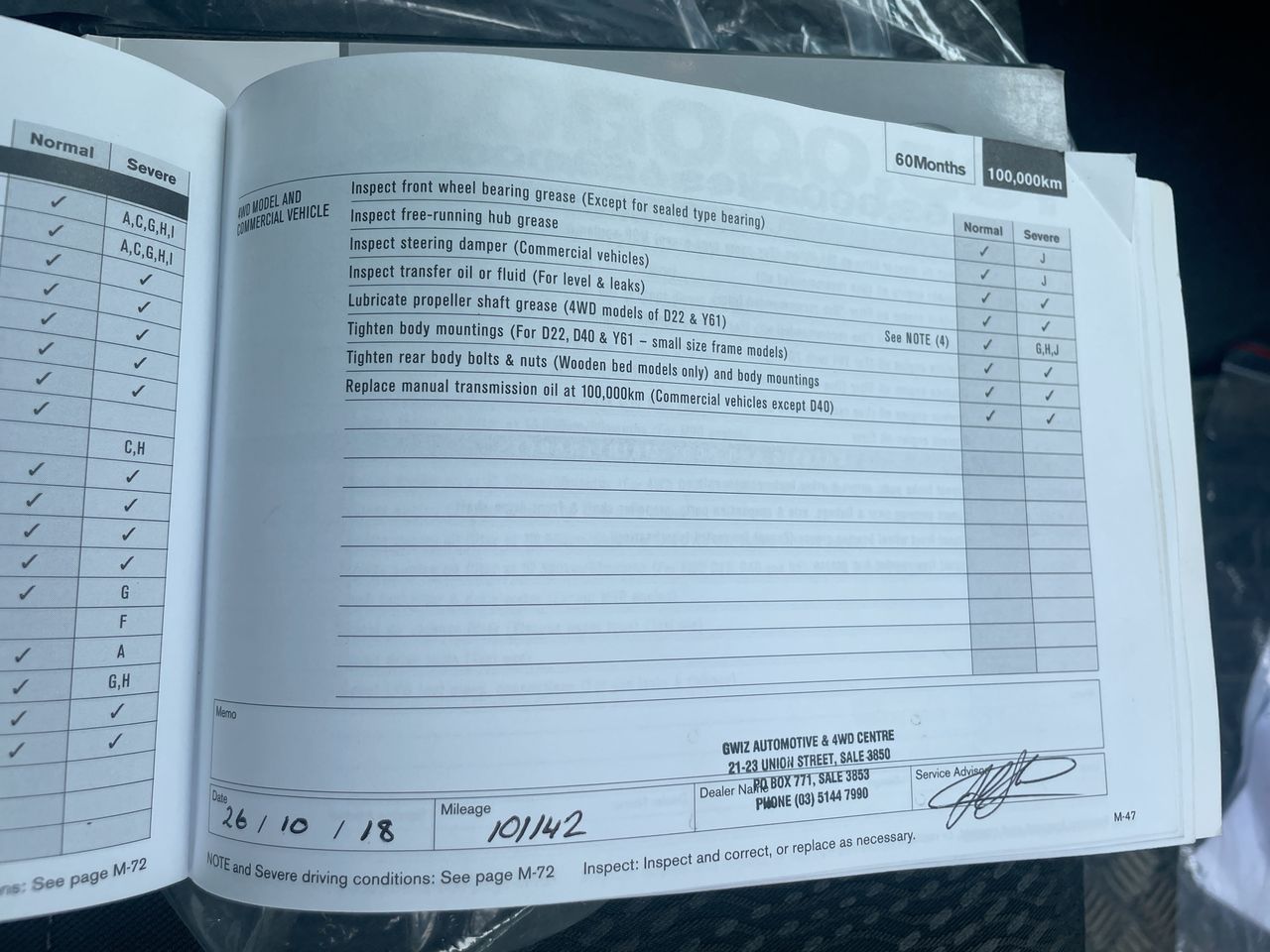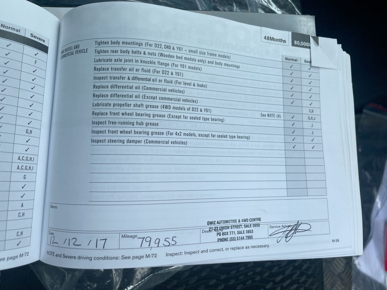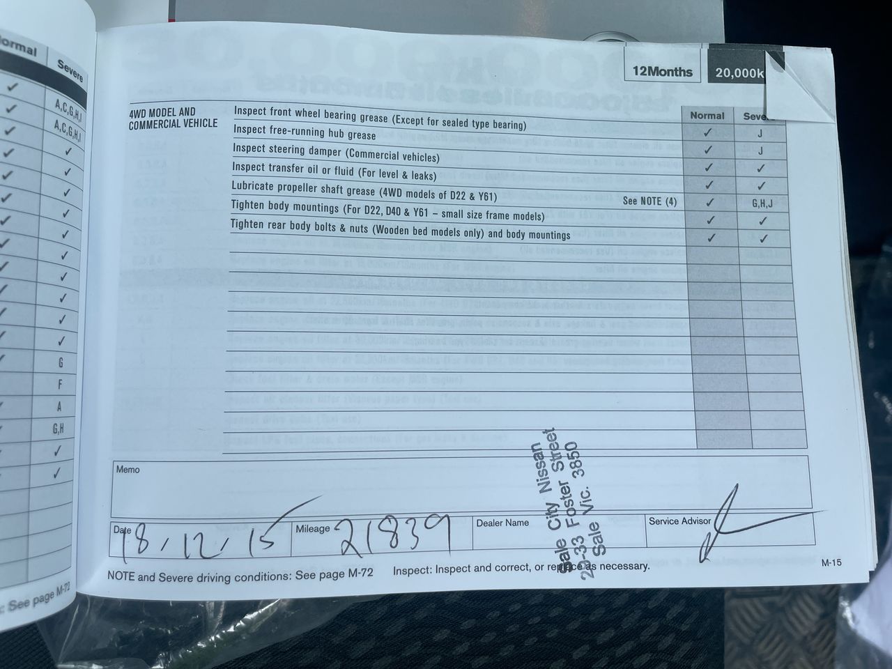 • Dents or marks on body consistent with age and kilometres.