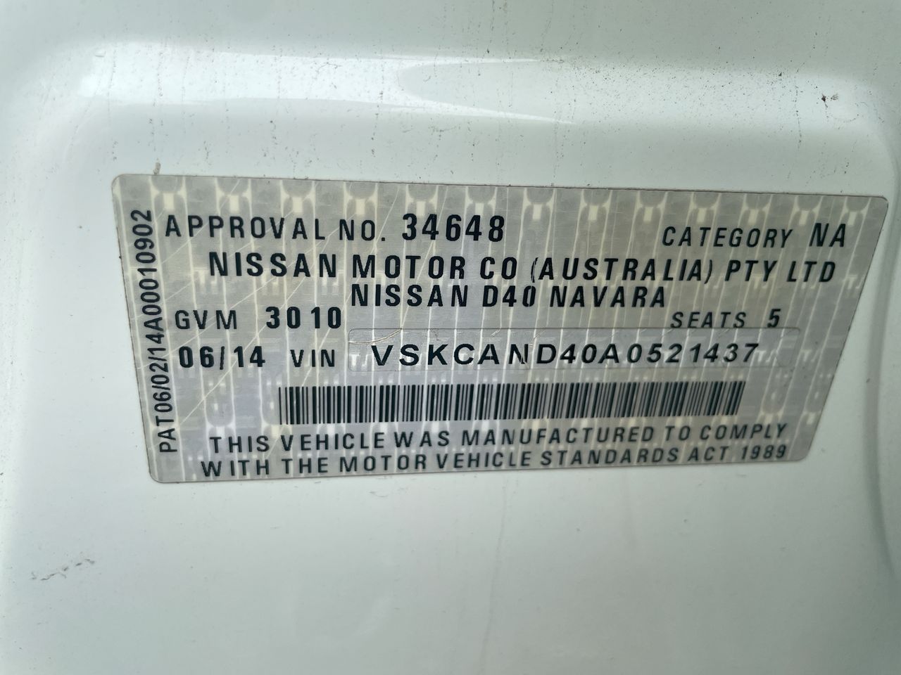 • VIN: VSKCAND40A0521437