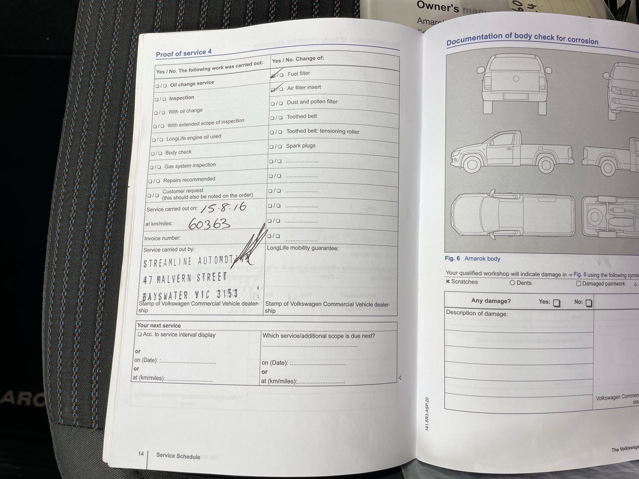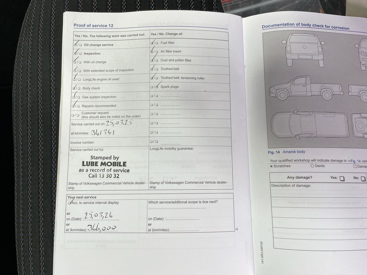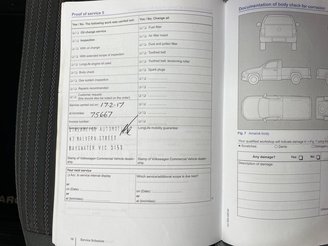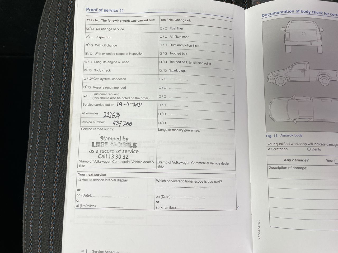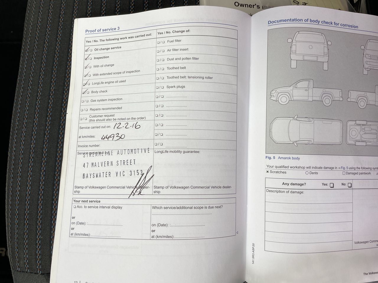 • Dents or marks on body consistent with age and kilometres.
