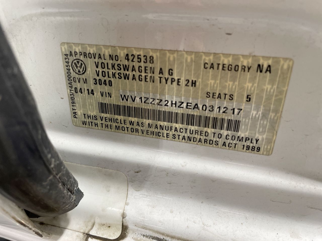 • VIN: WV1ZZZ2HZEA031217