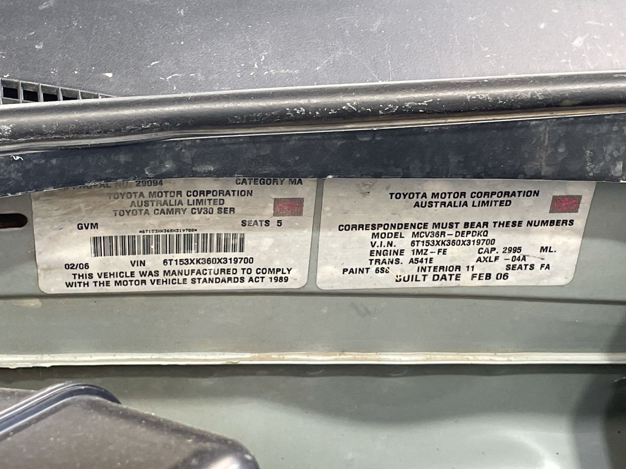 • VIN: 6T153XK360X319700