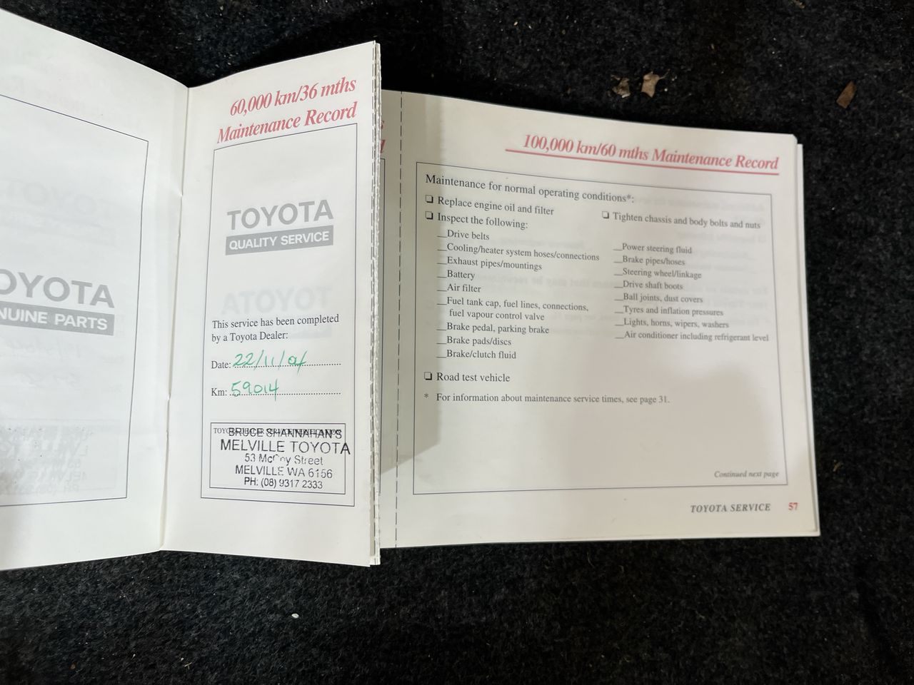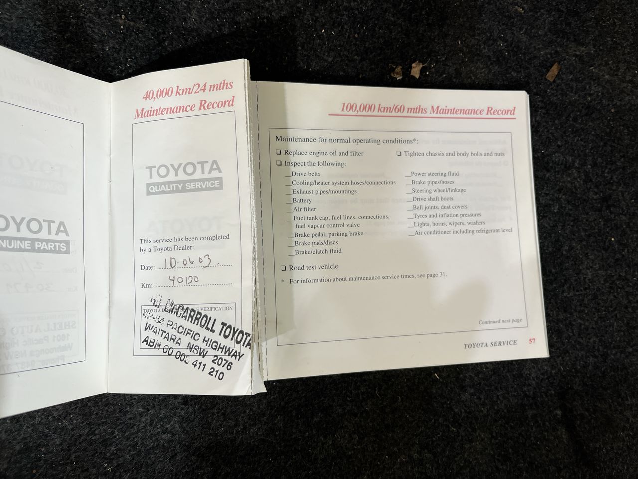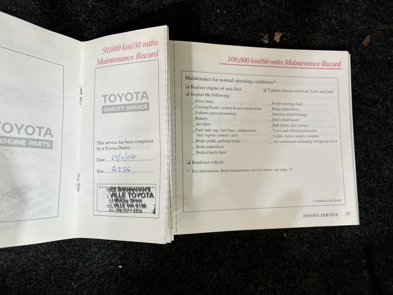 • Dents or marks on body consistent with age and kilometres.