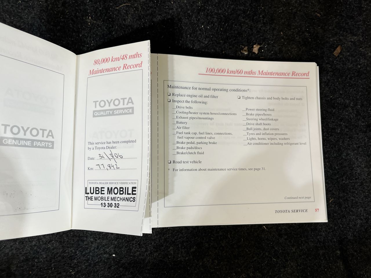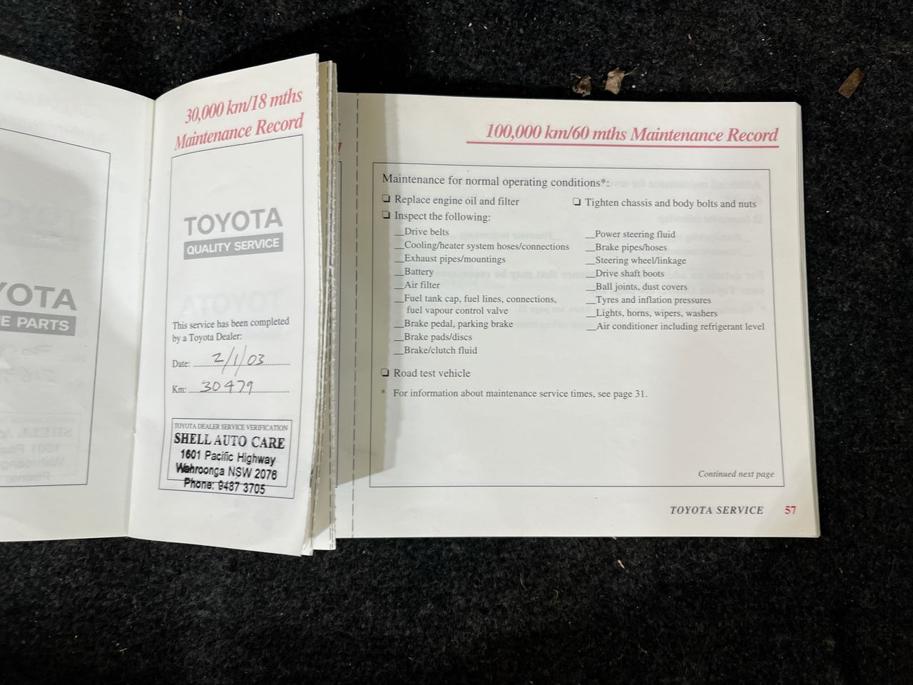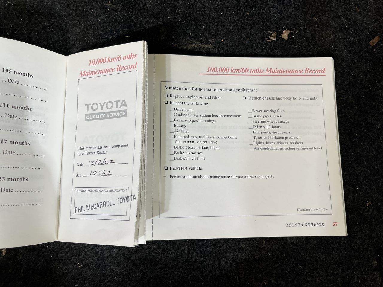 • Dents or marks on body consistent with age and kilometres.