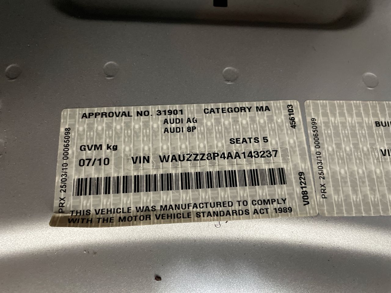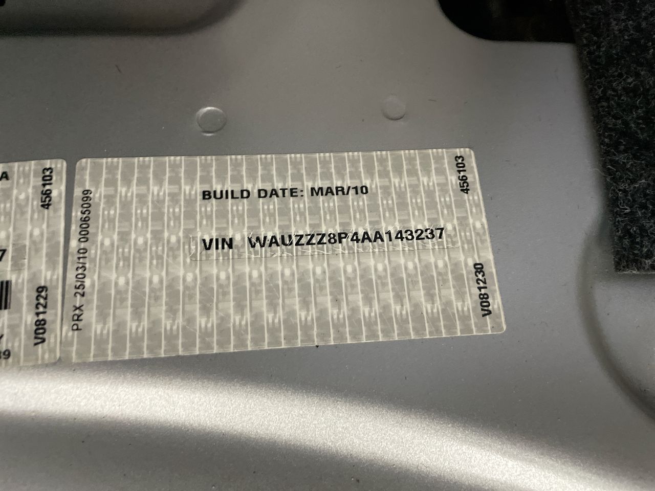 • VIN: WAUZZZ8P4AA143237