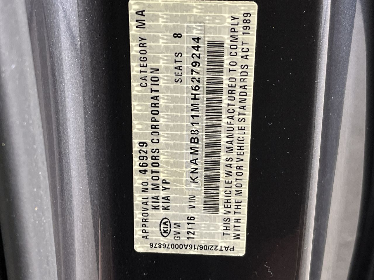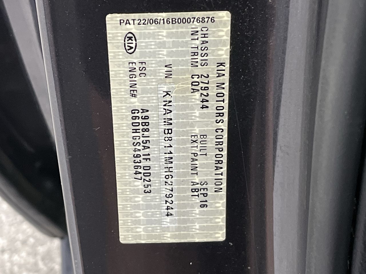 • VIN: KNAMB811MH6279244