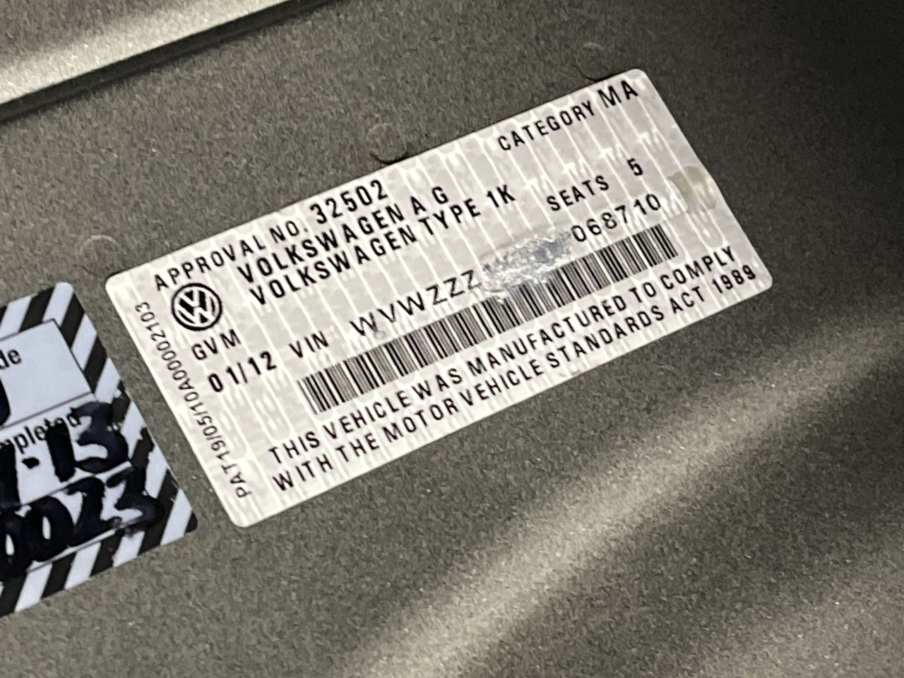 • VIN: WVWZZZ1KZCP068710