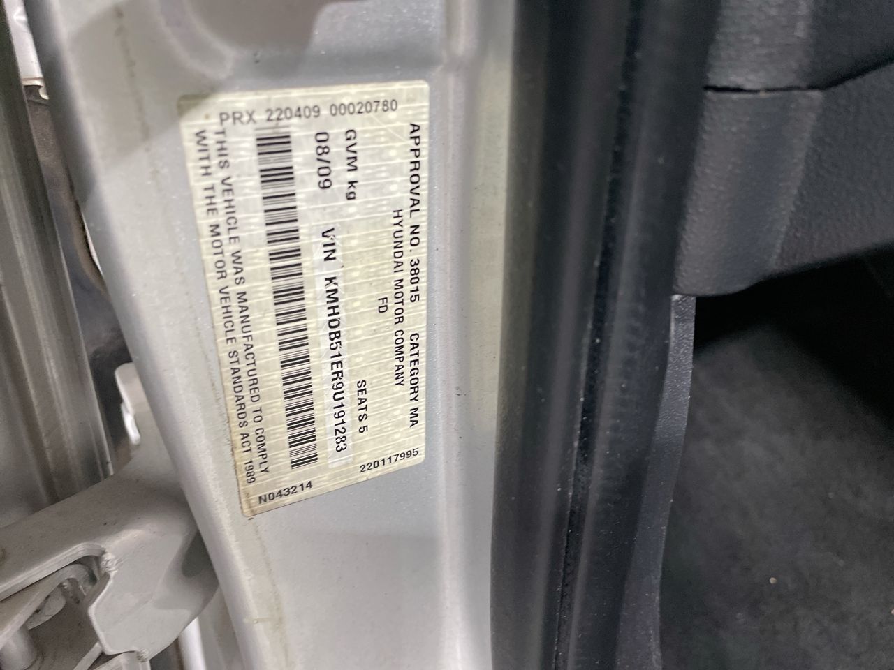 (SN:KMHDB51ER9U191283) (140403-1)