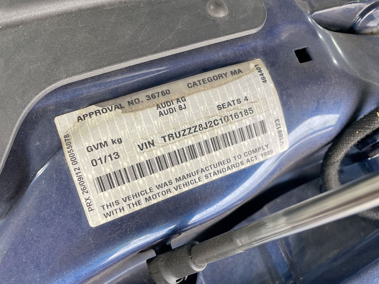 2012 Audi TT 1.8 TFSI 8J Automatic Coupe (Complied 2013)