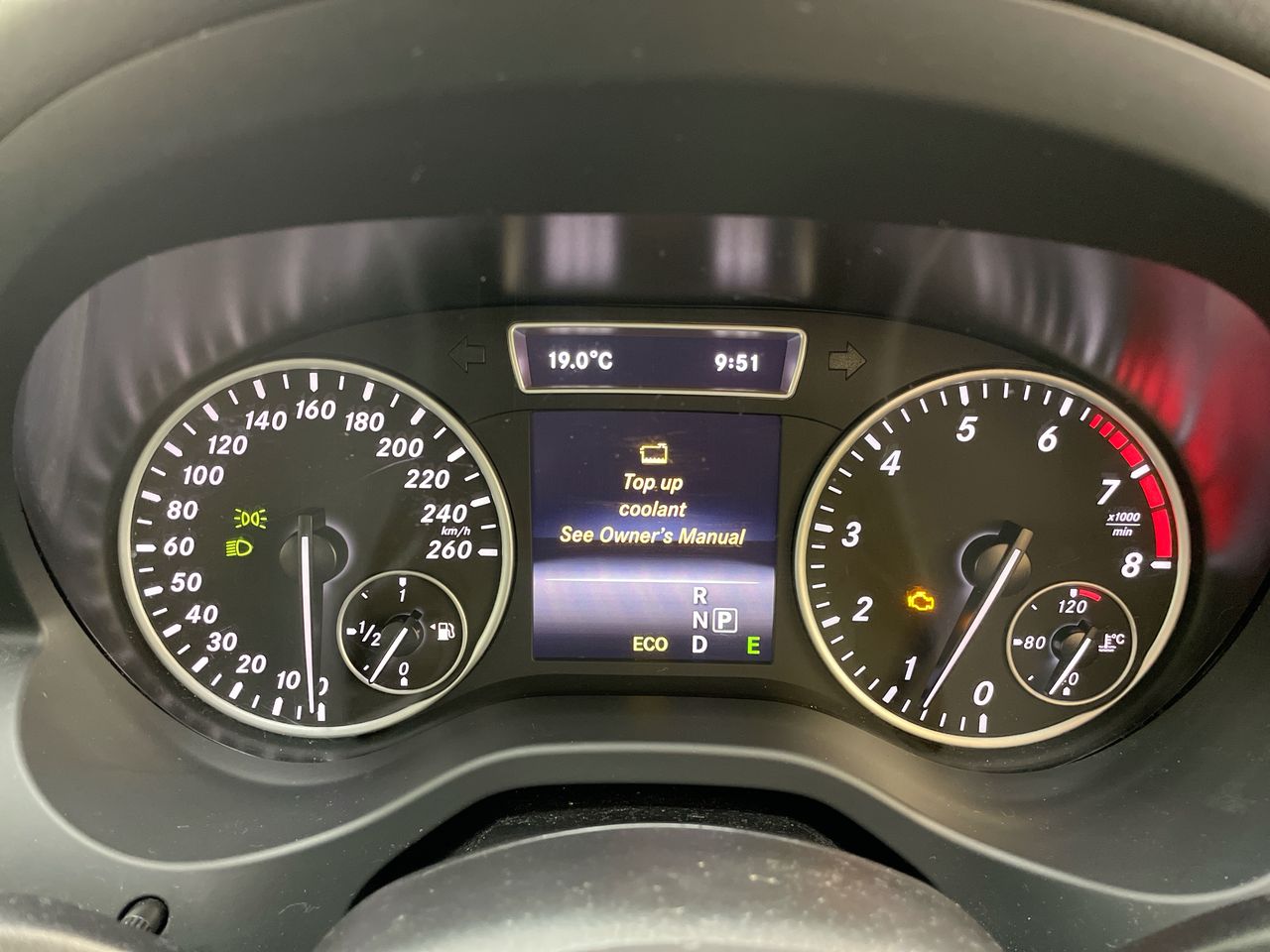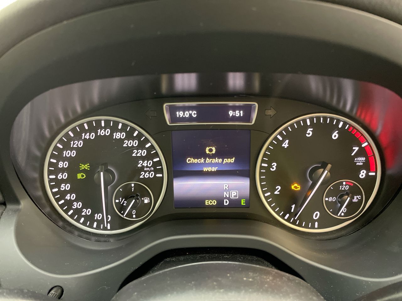 • Interior: check brake pad wear, coolant warning