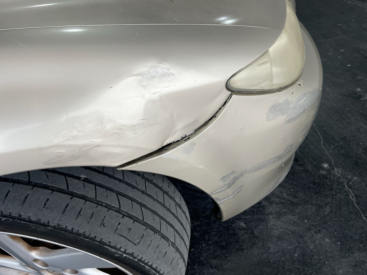 • Large Dent on Front bumper/quarter panel