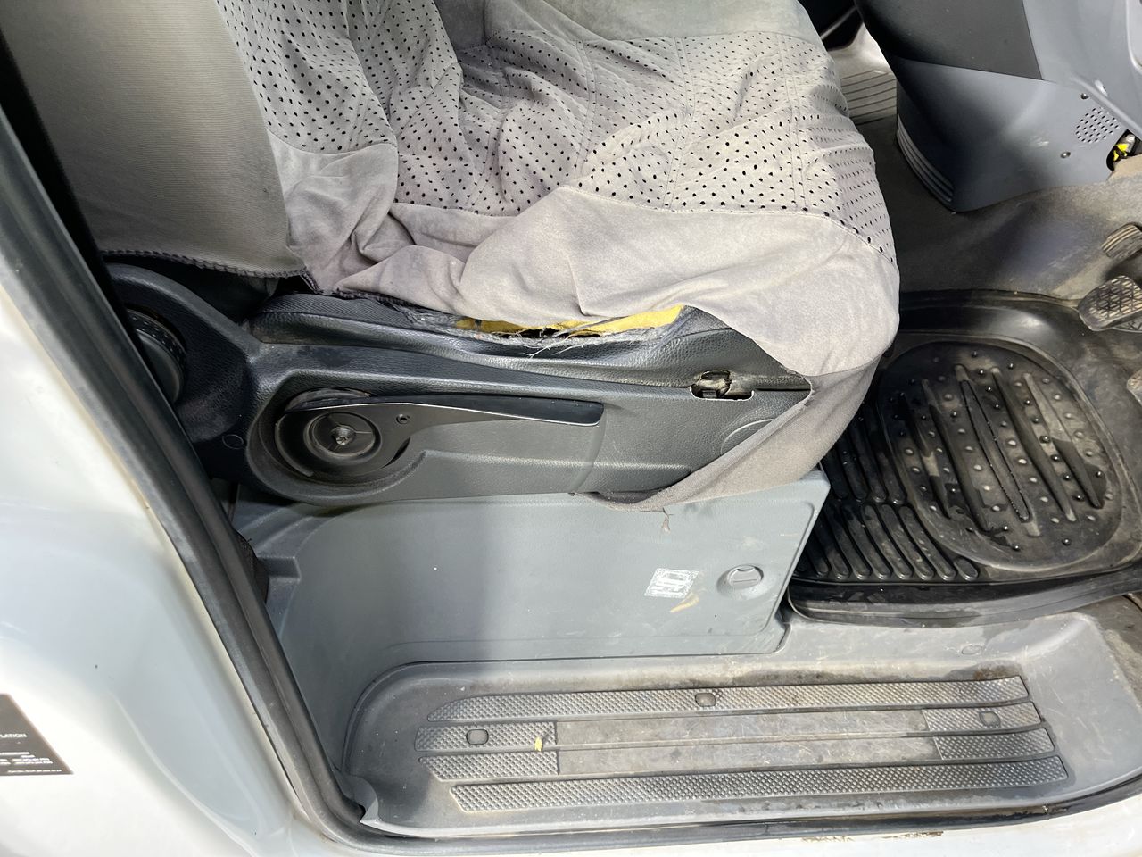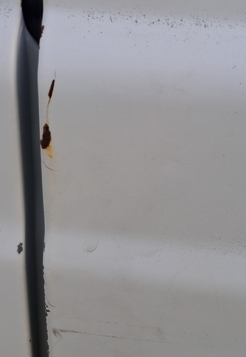 • Exterior: Corroded paint chips around vehicle. Driver seat worn.