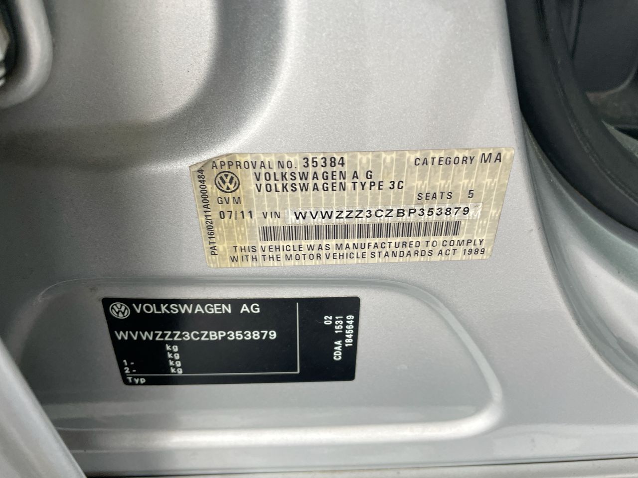 • VIN: WVWZZZ3CZBP353879
