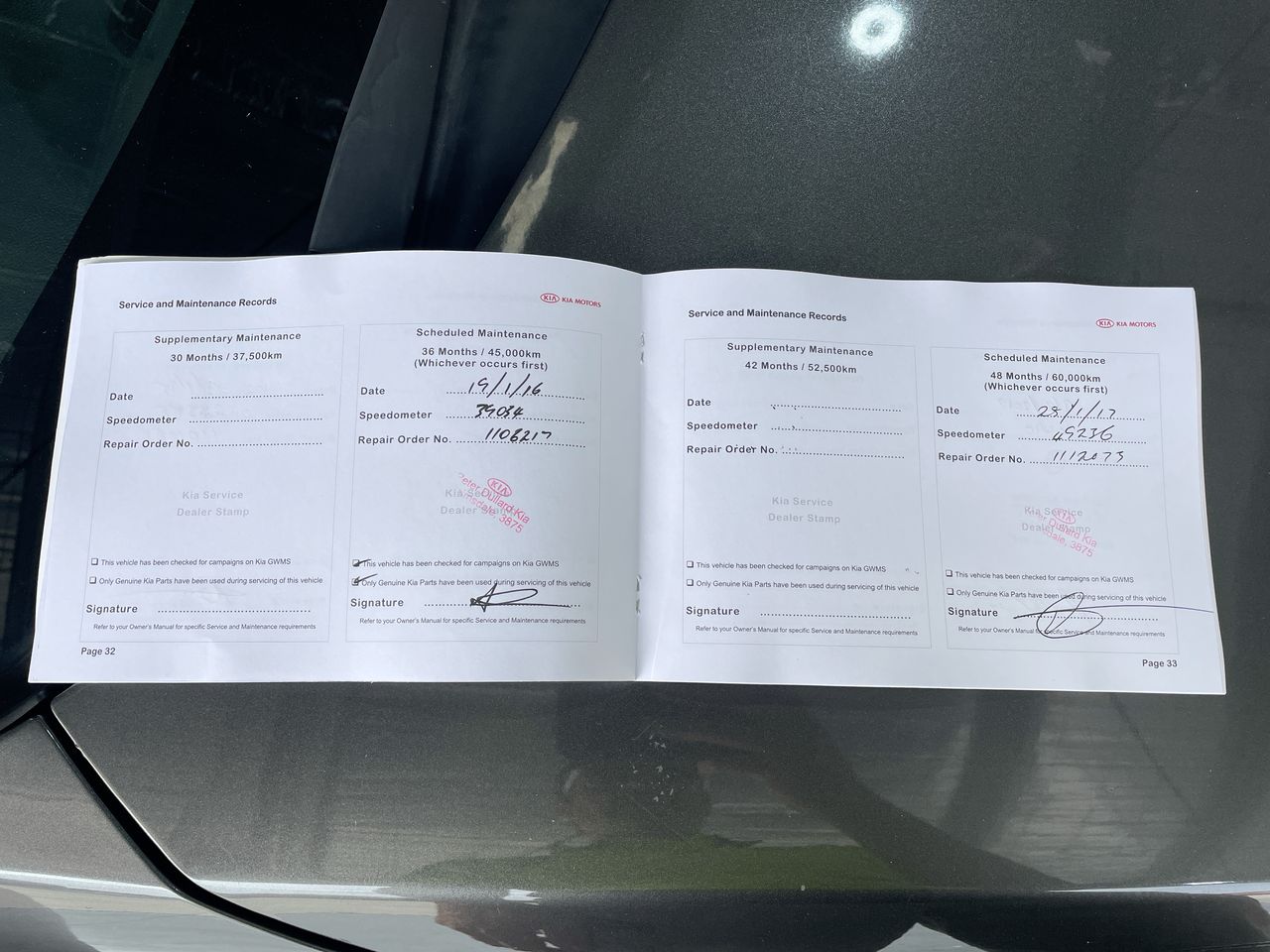 • Dents or marks on body consistent with age and kilometres.