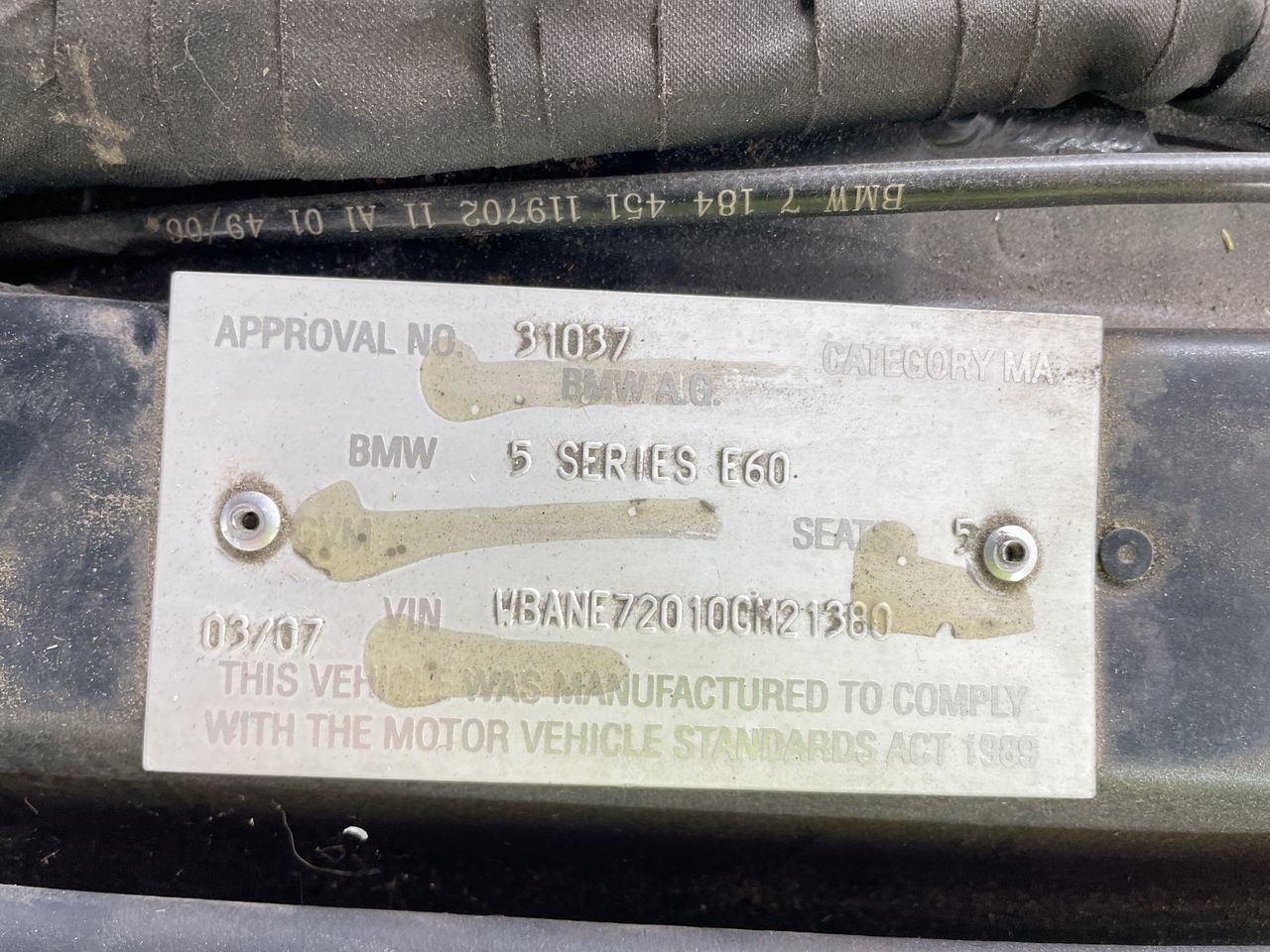 • VIN: WBANE72010CM21380