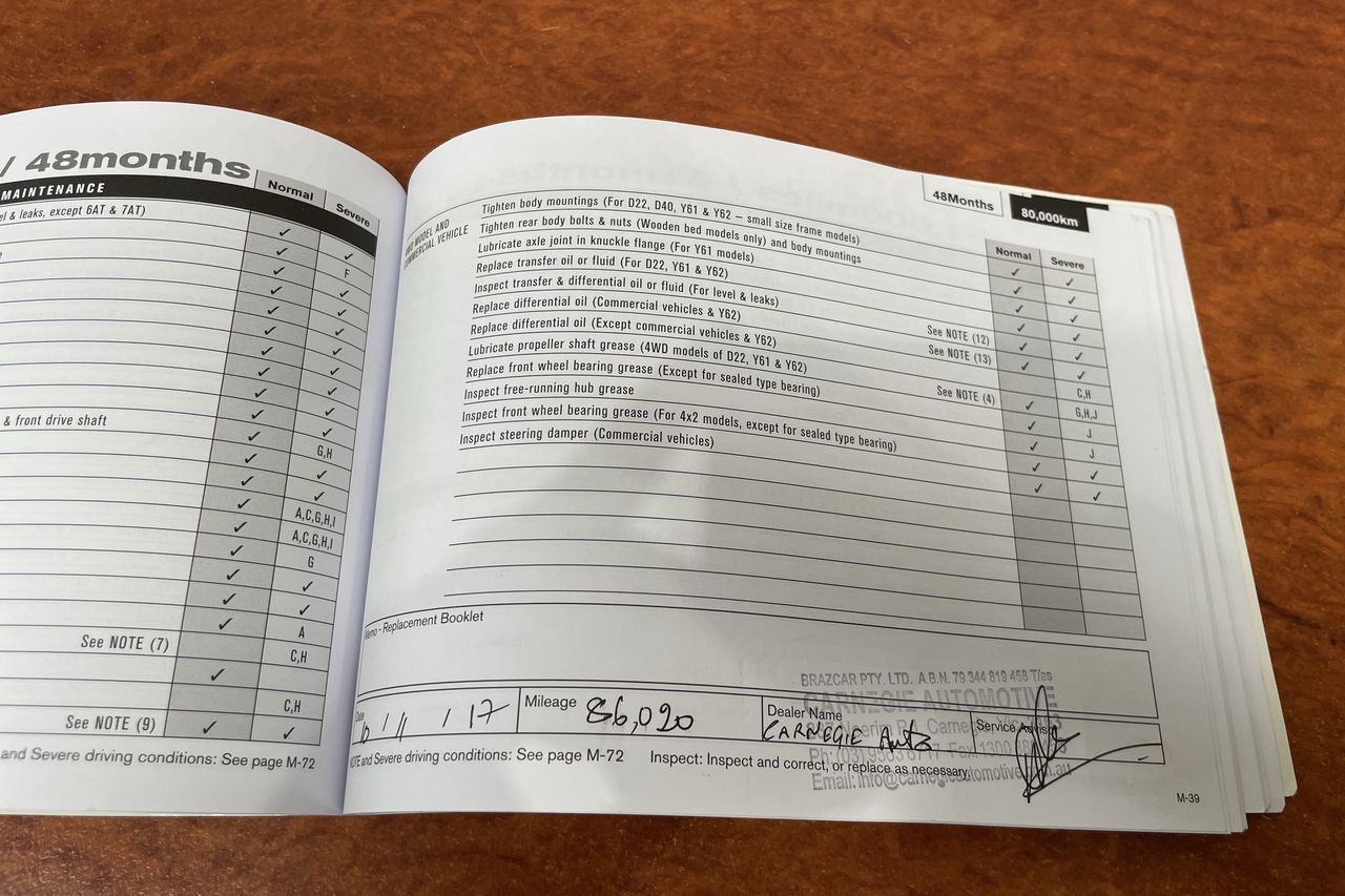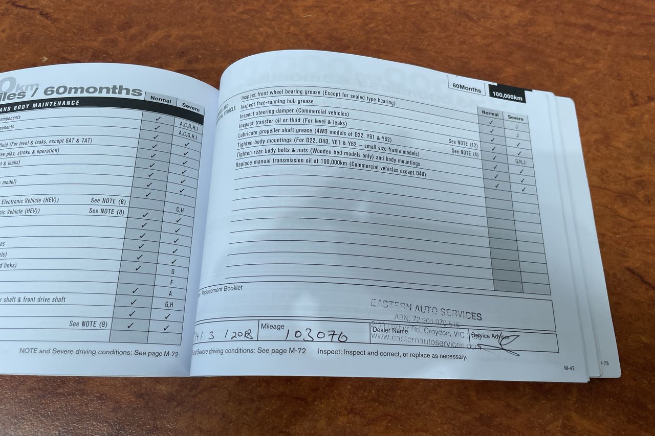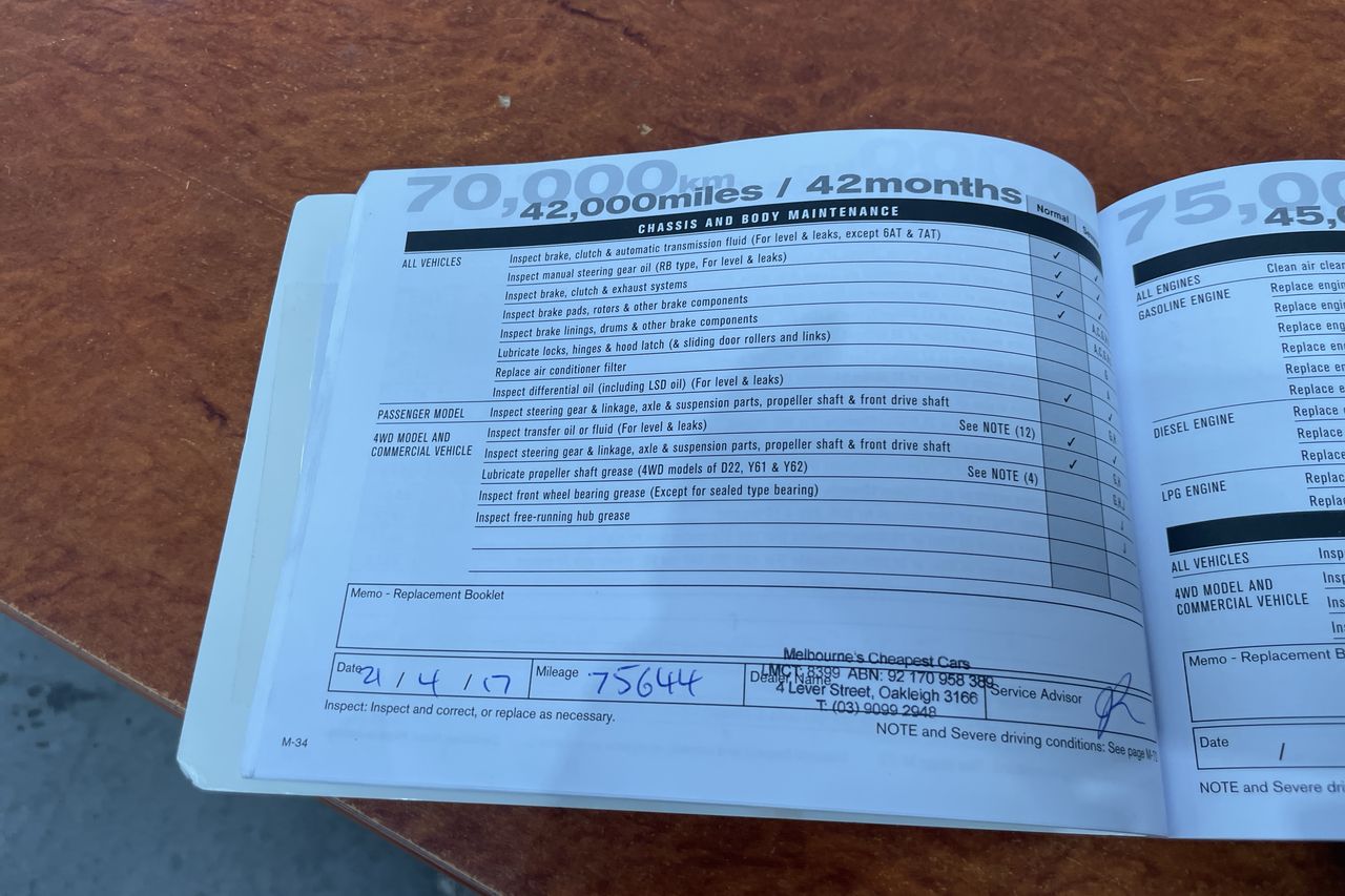 • Dents or marks on body consistent with age and kilometres.