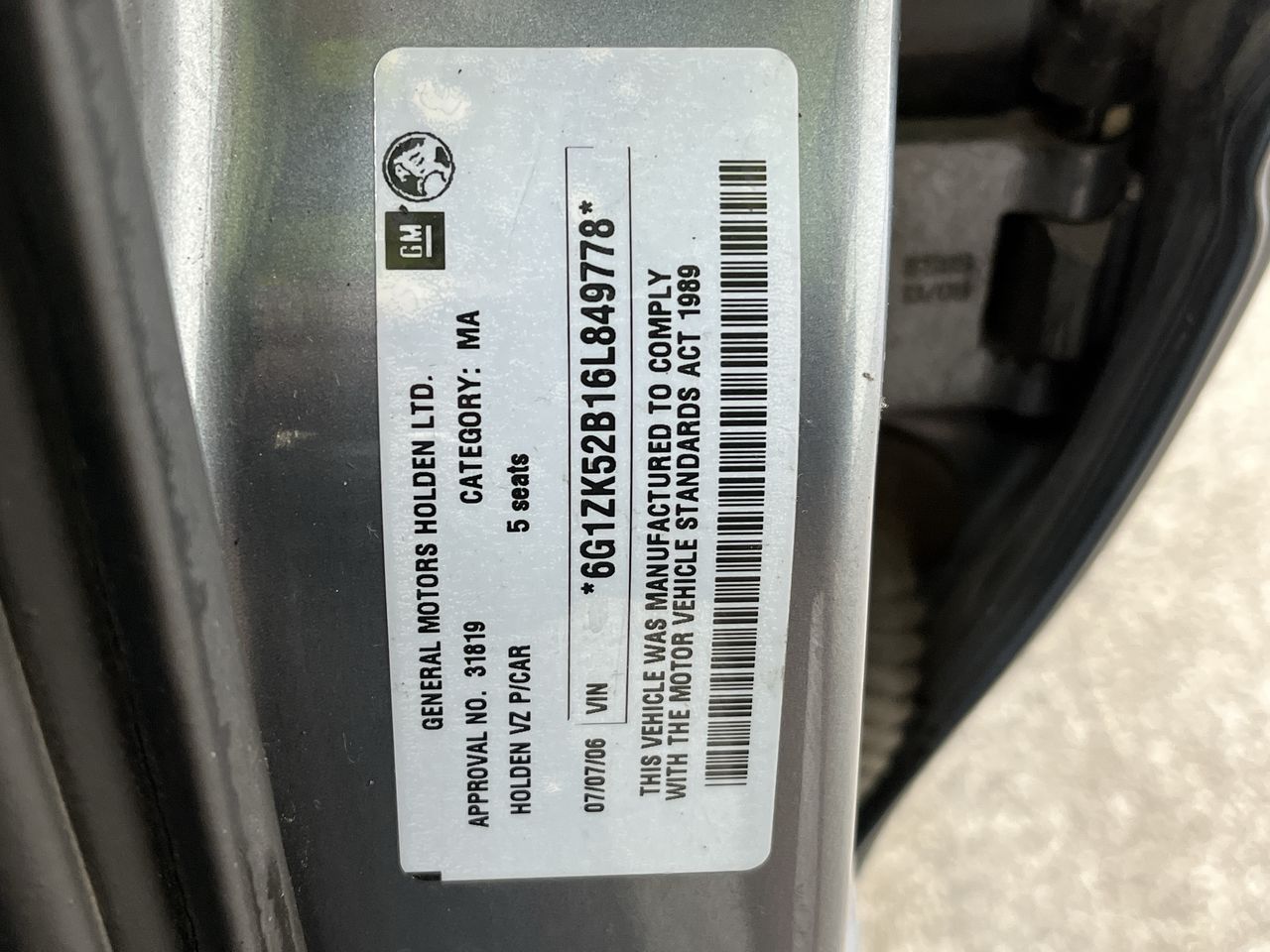 • VIN: 6G1ZK52B16L849778