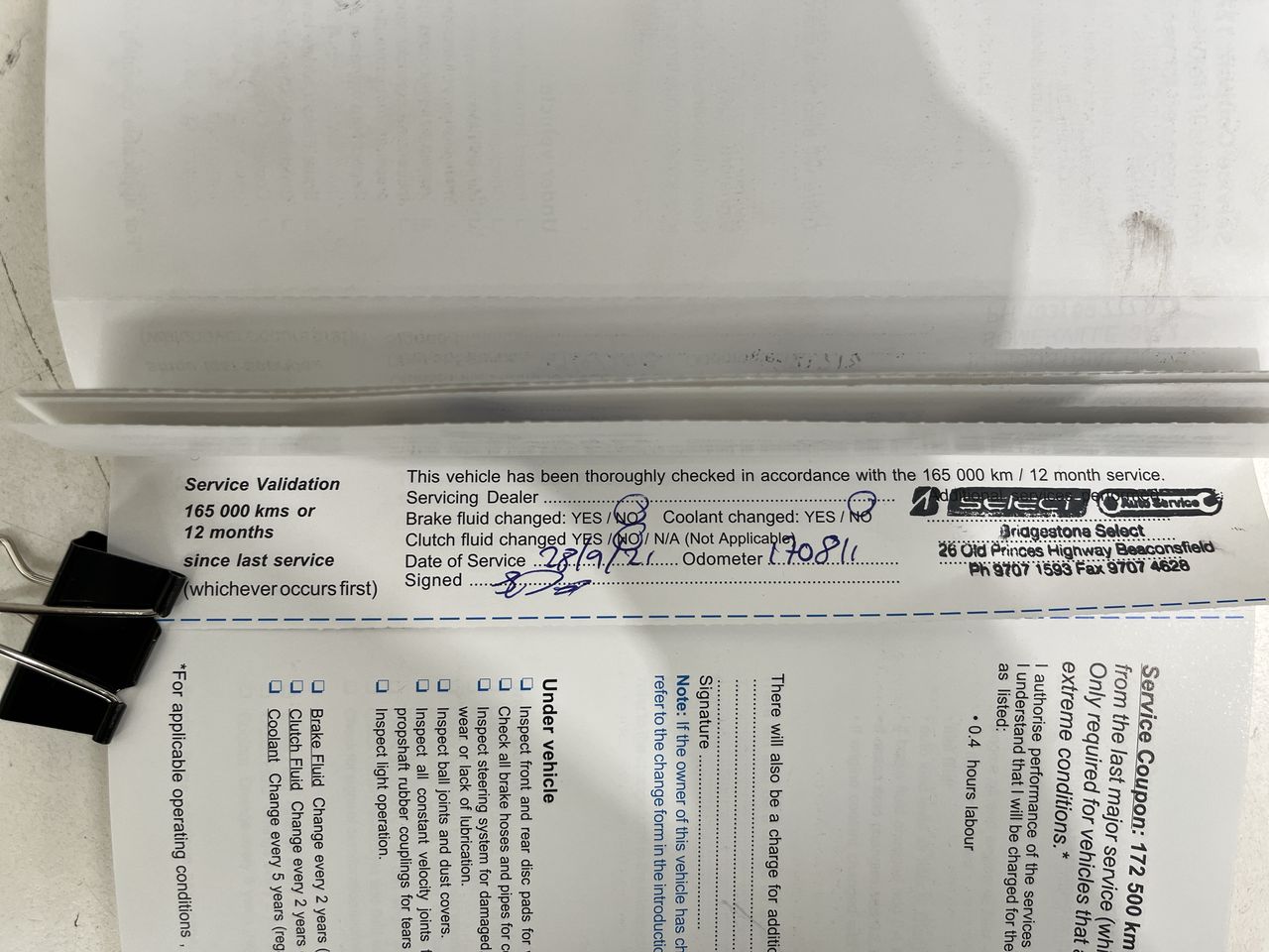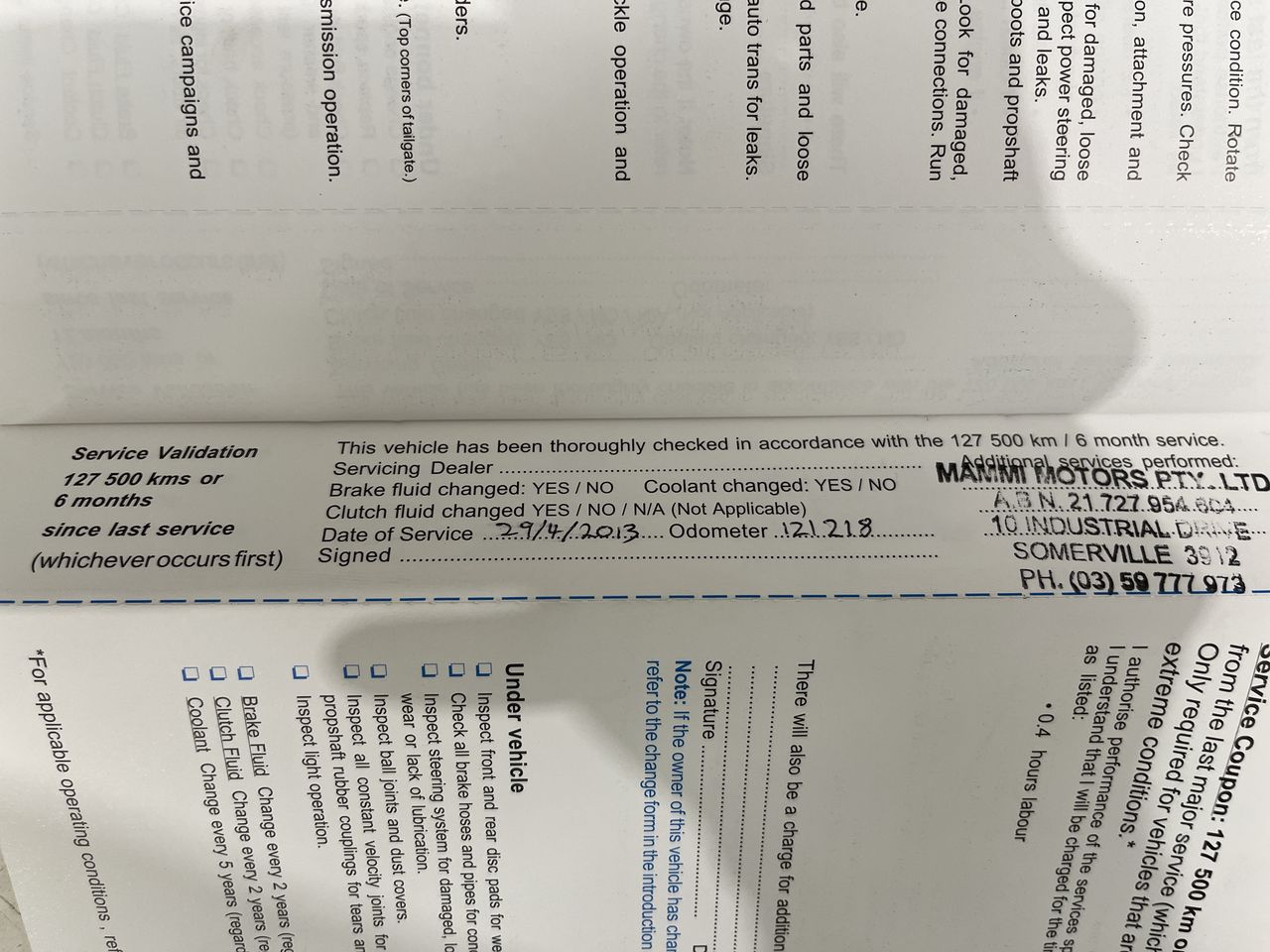 • Dents or marks on body consistent with age and kilometres.