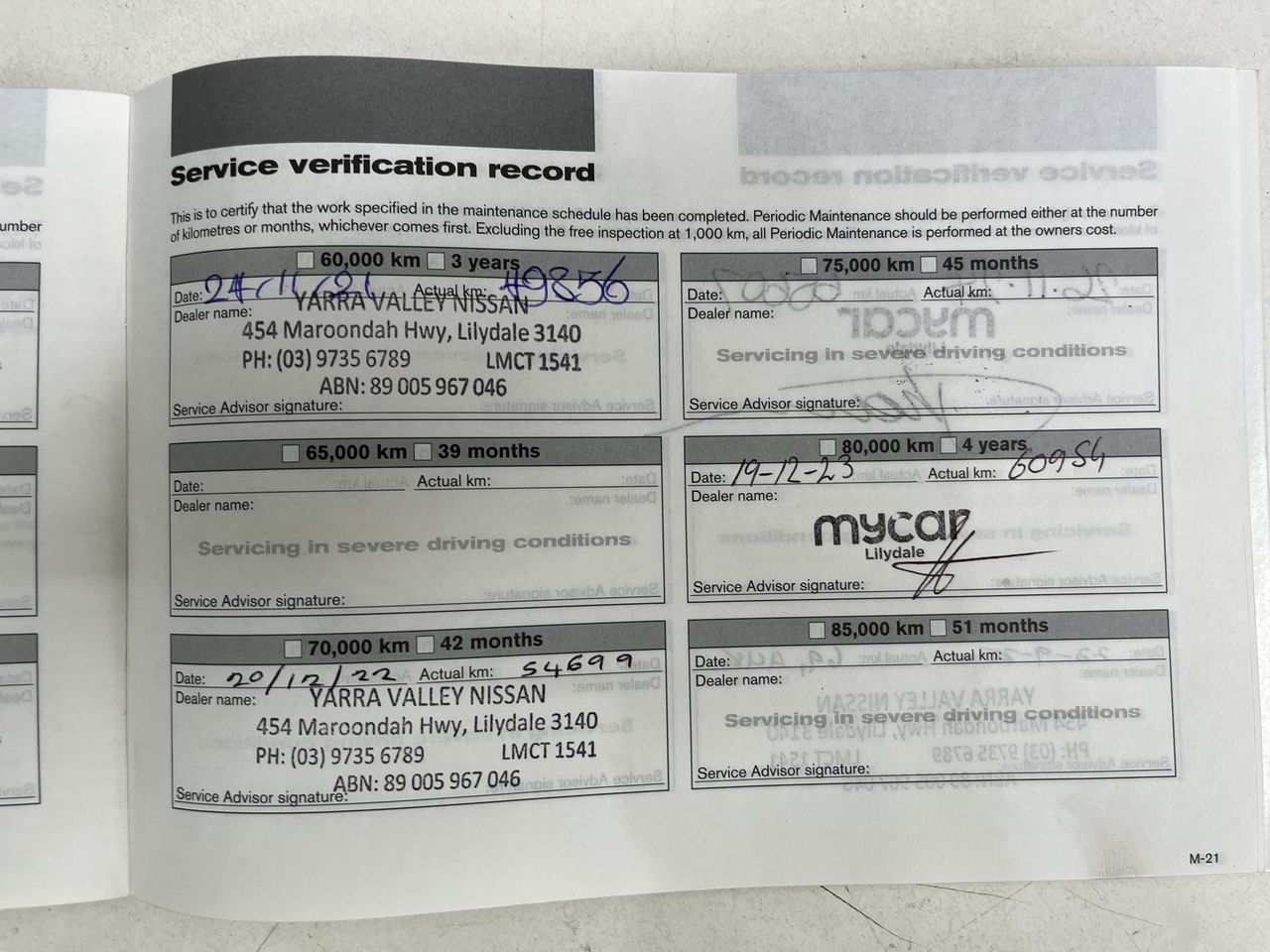 • Dents or marks on body consistent with age and kilometres.