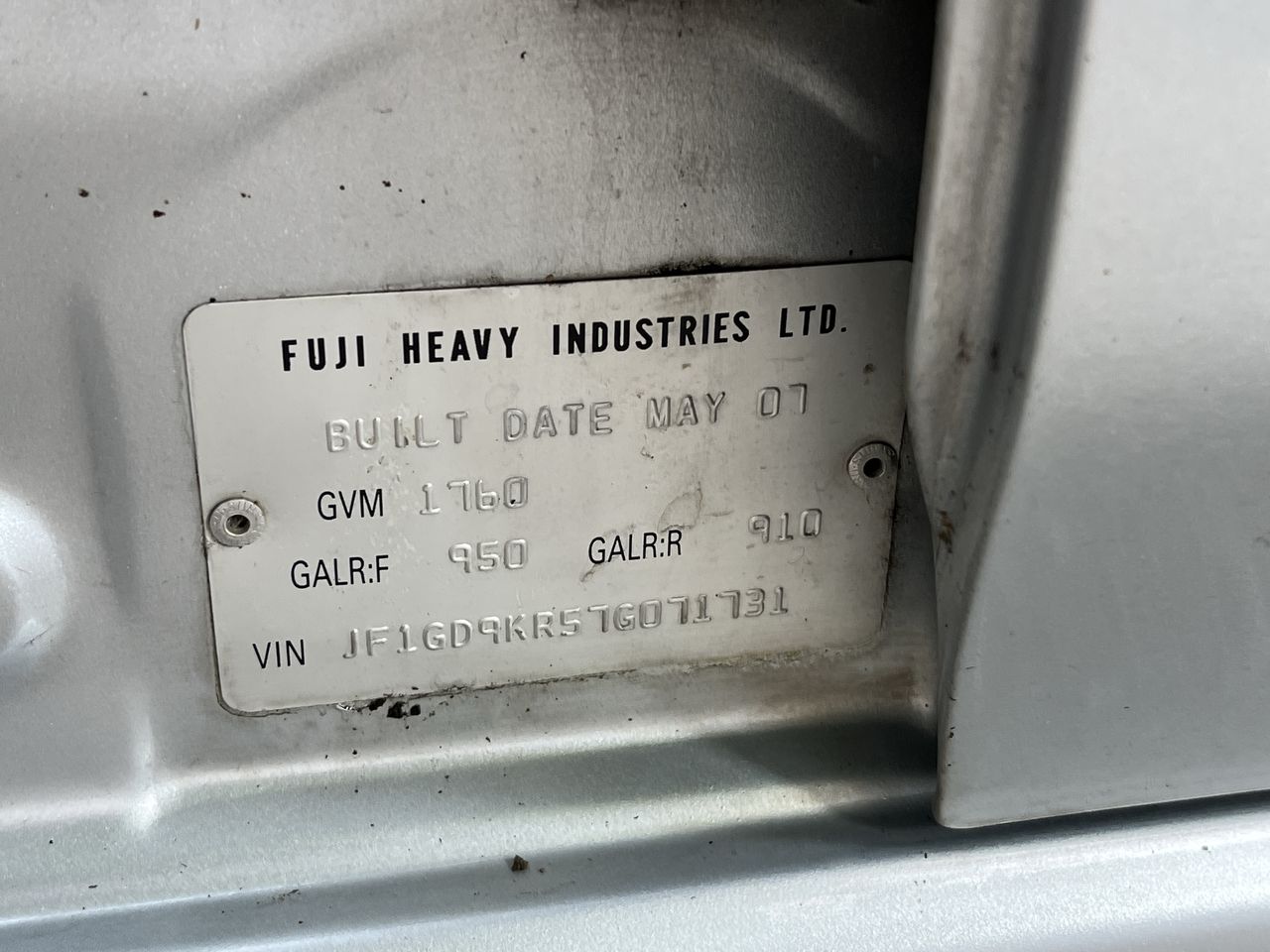 • VIN: JF1GD9KR57G071731