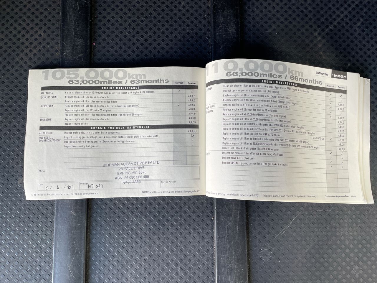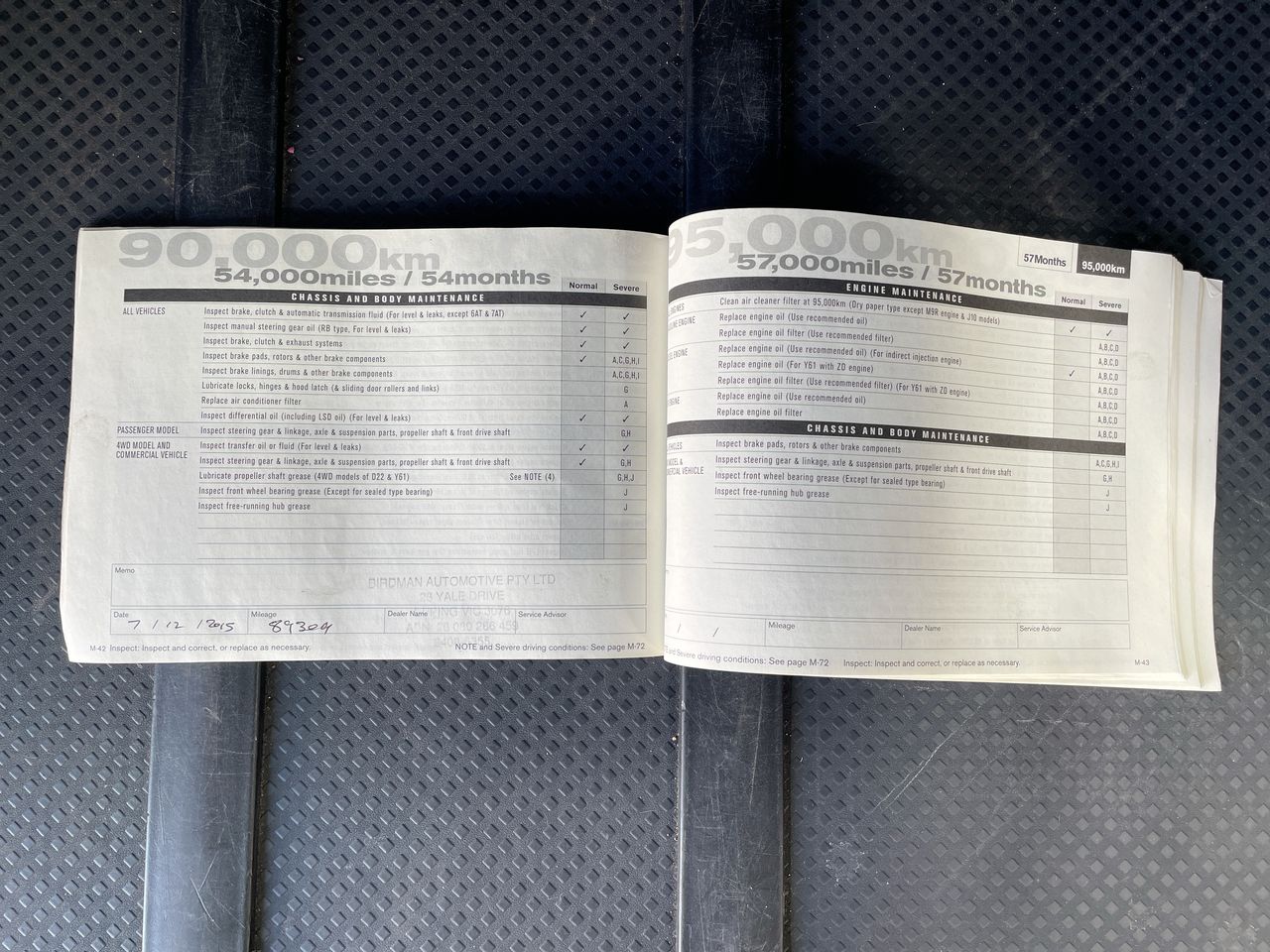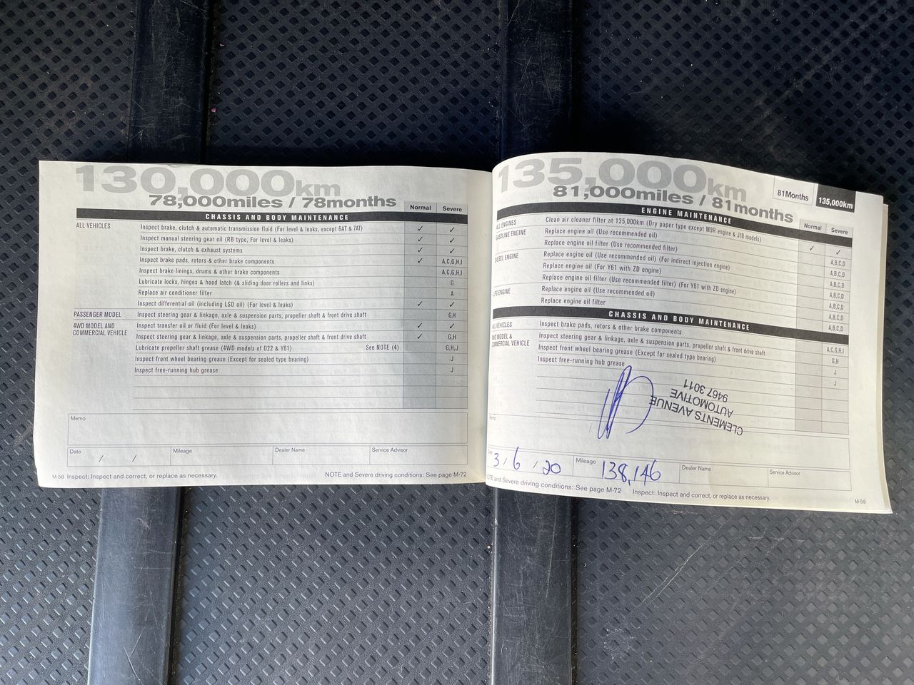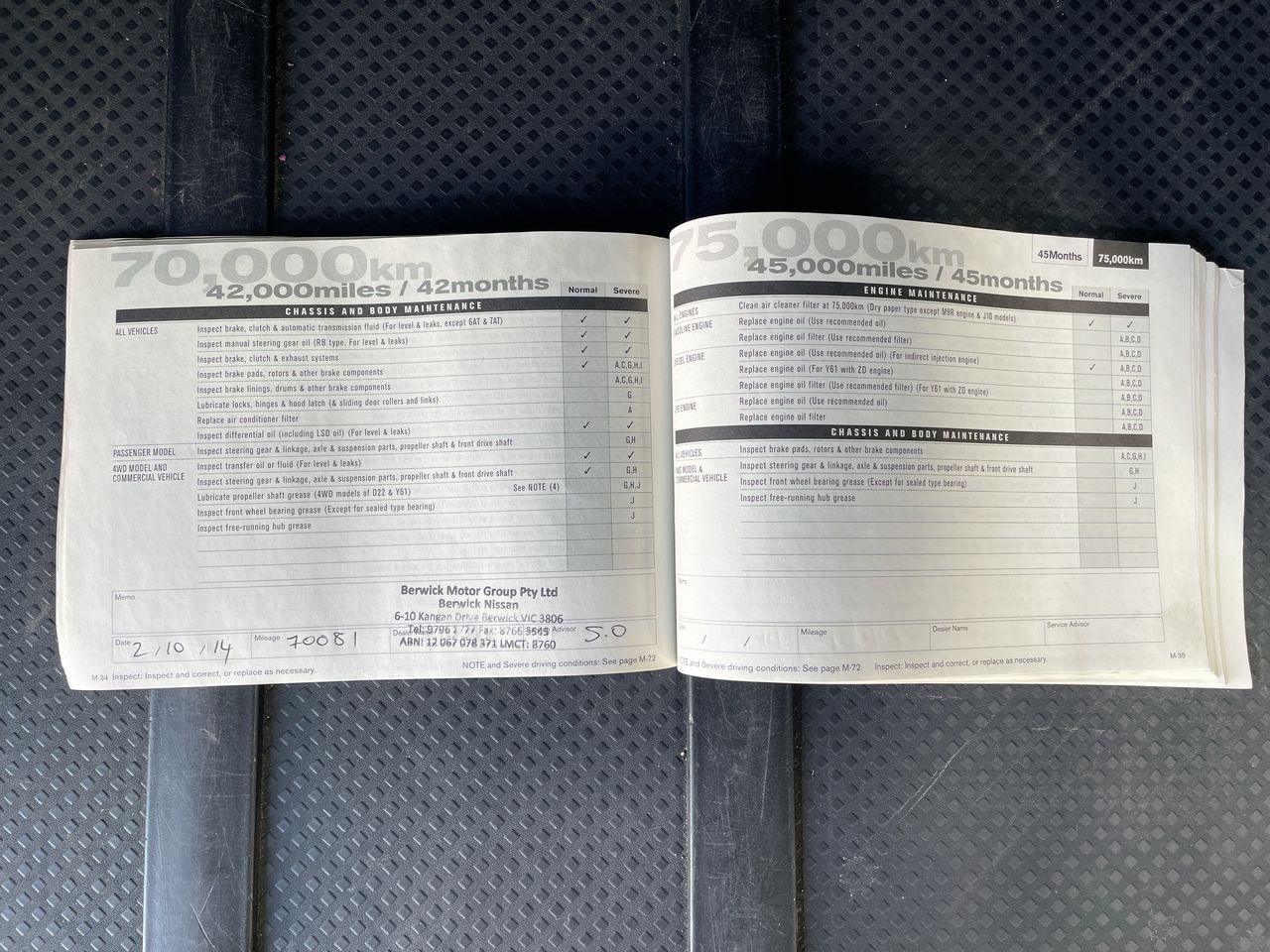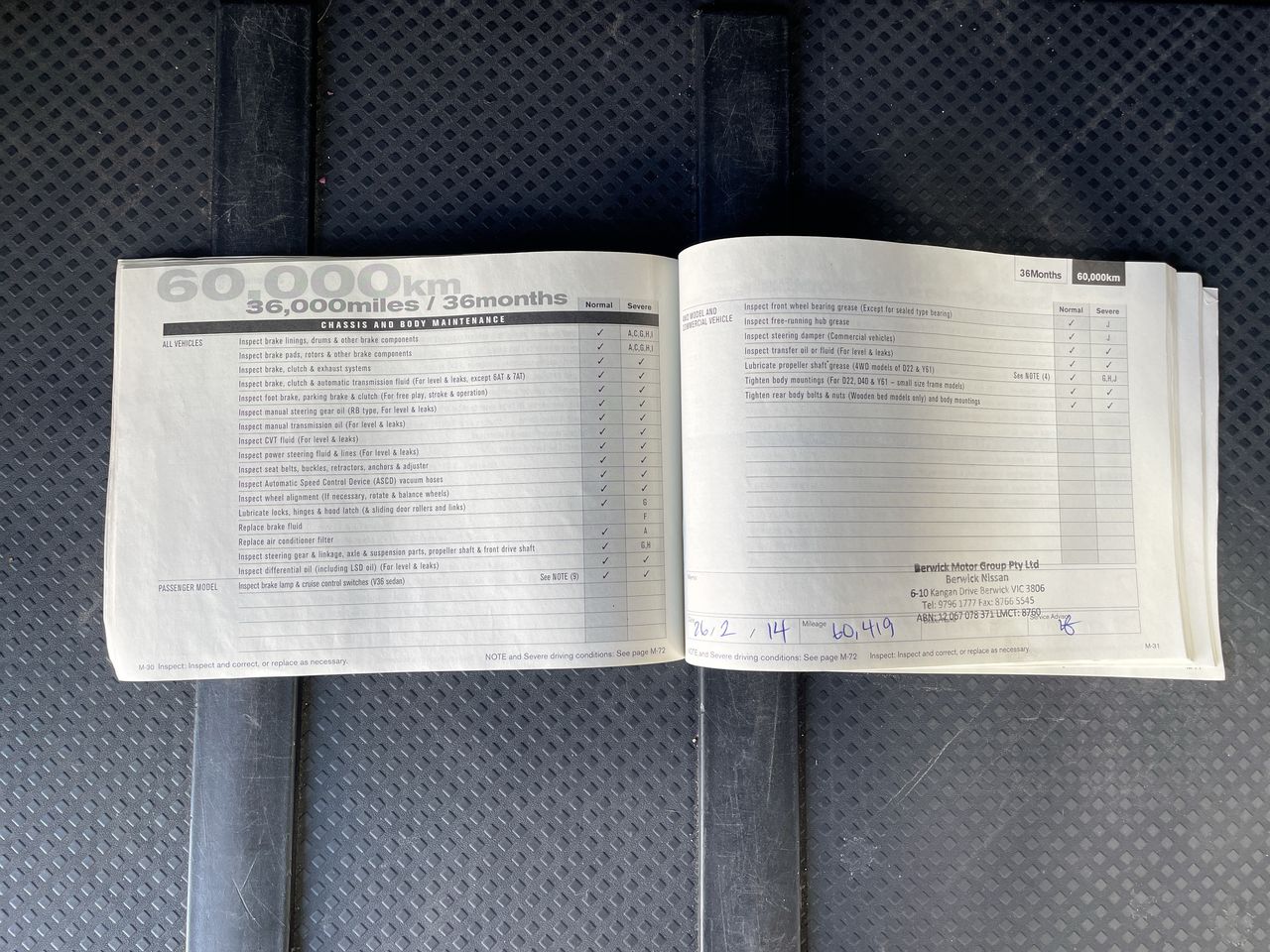 • Dents or marks on body consistent with age and kilometres.