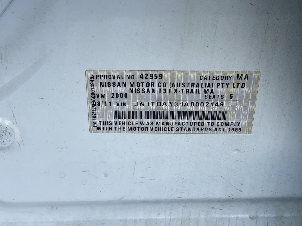 • VIN: JN1TBAT31A0002149