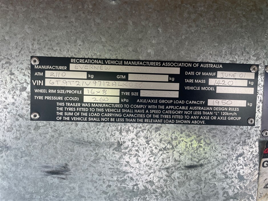 Part of Sale 2001 Evernew Caravan