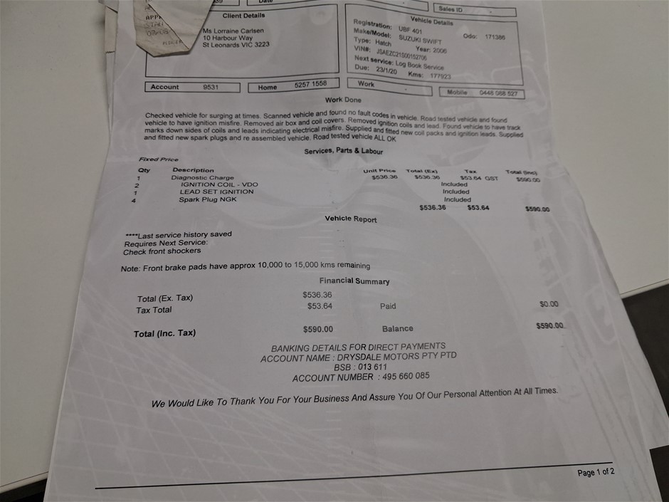 • Registration Expiry Date: 28-04-2026 - Registration will only be transferred to the registered bidder who must hold a valid VIC Drivers Licence otherwise vehicle will be sold unregistered.