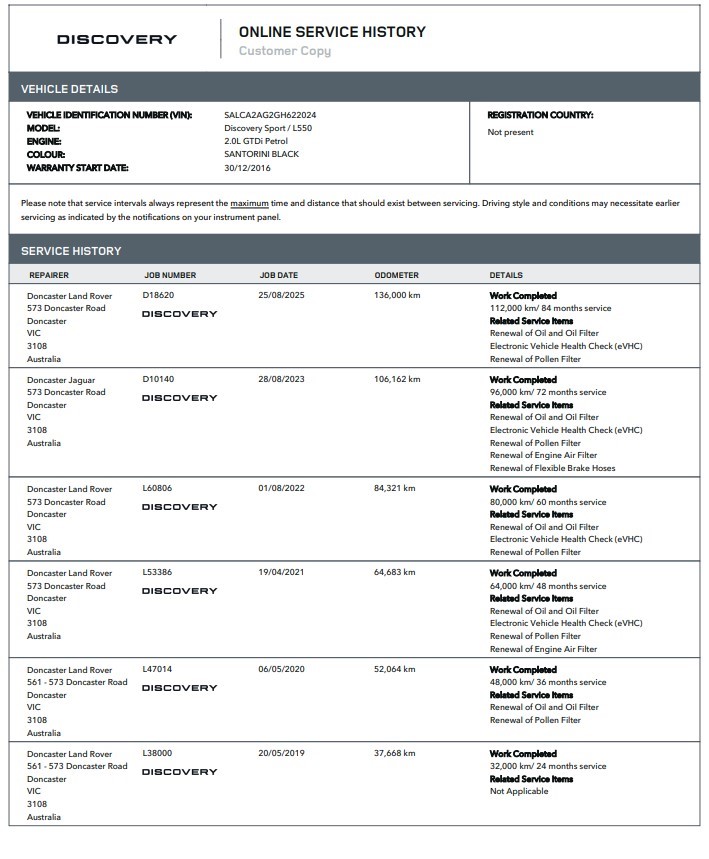 | Part of Sale | 2016 Land Rover DISCOVERY SPORT Si4 SE 9 auto Wagon | ||||||||||||||
