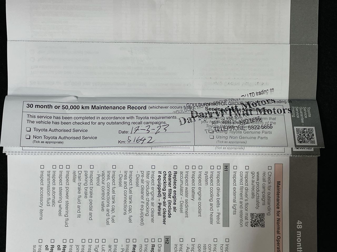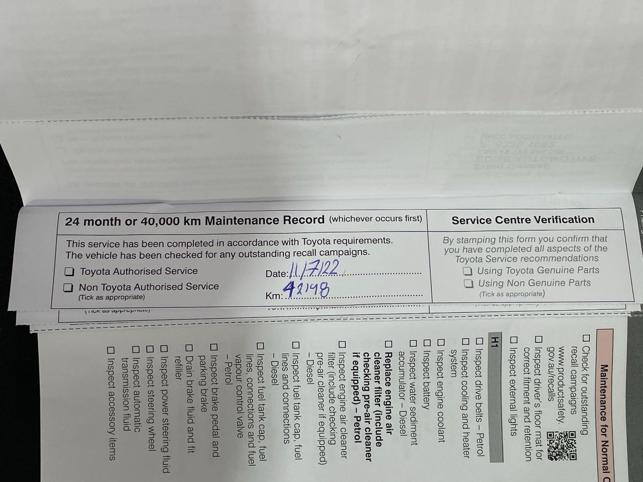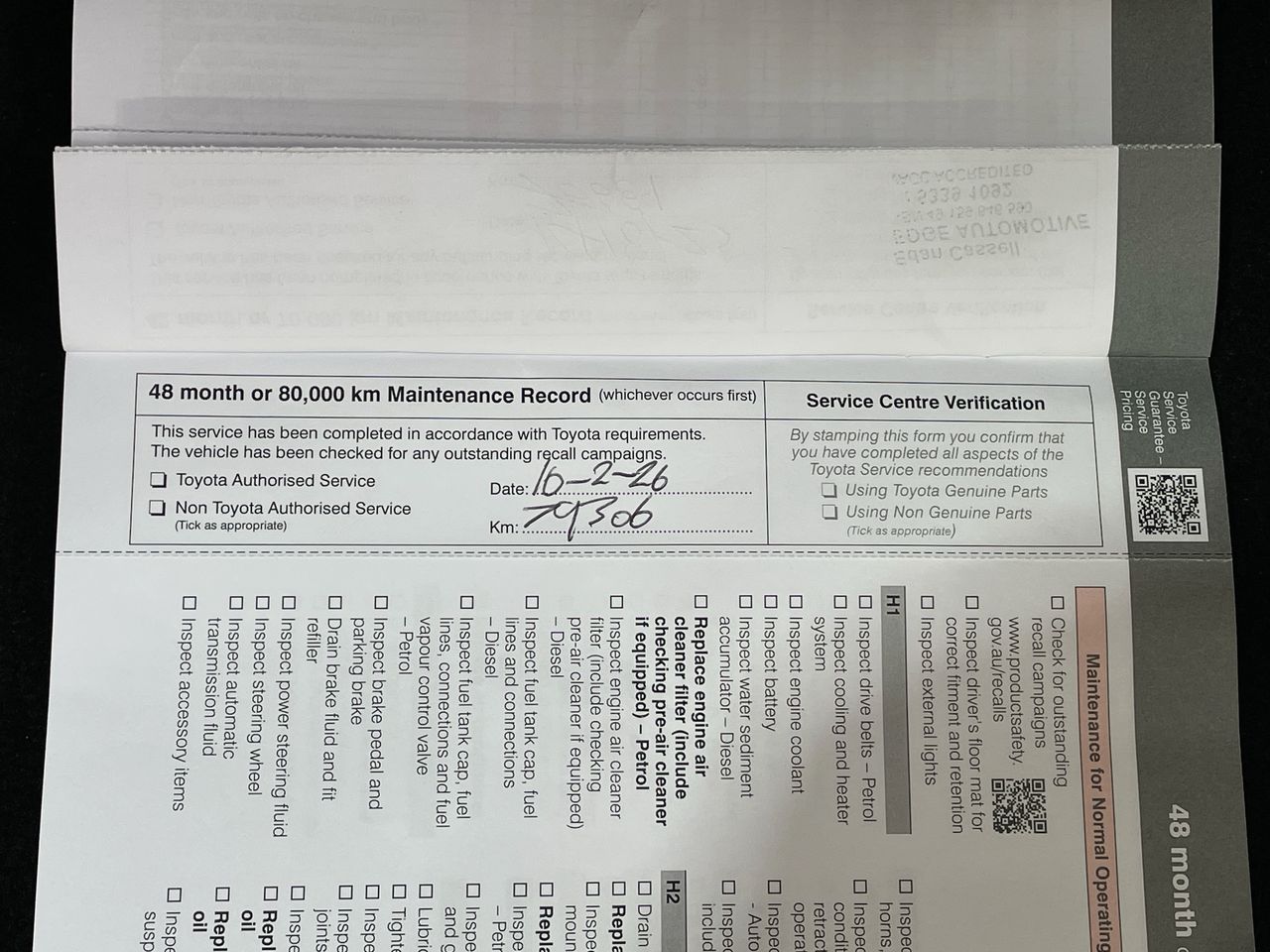 • Service History: Yes