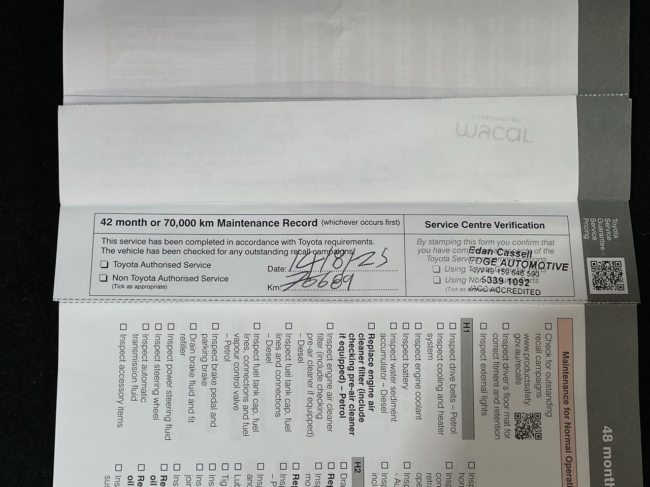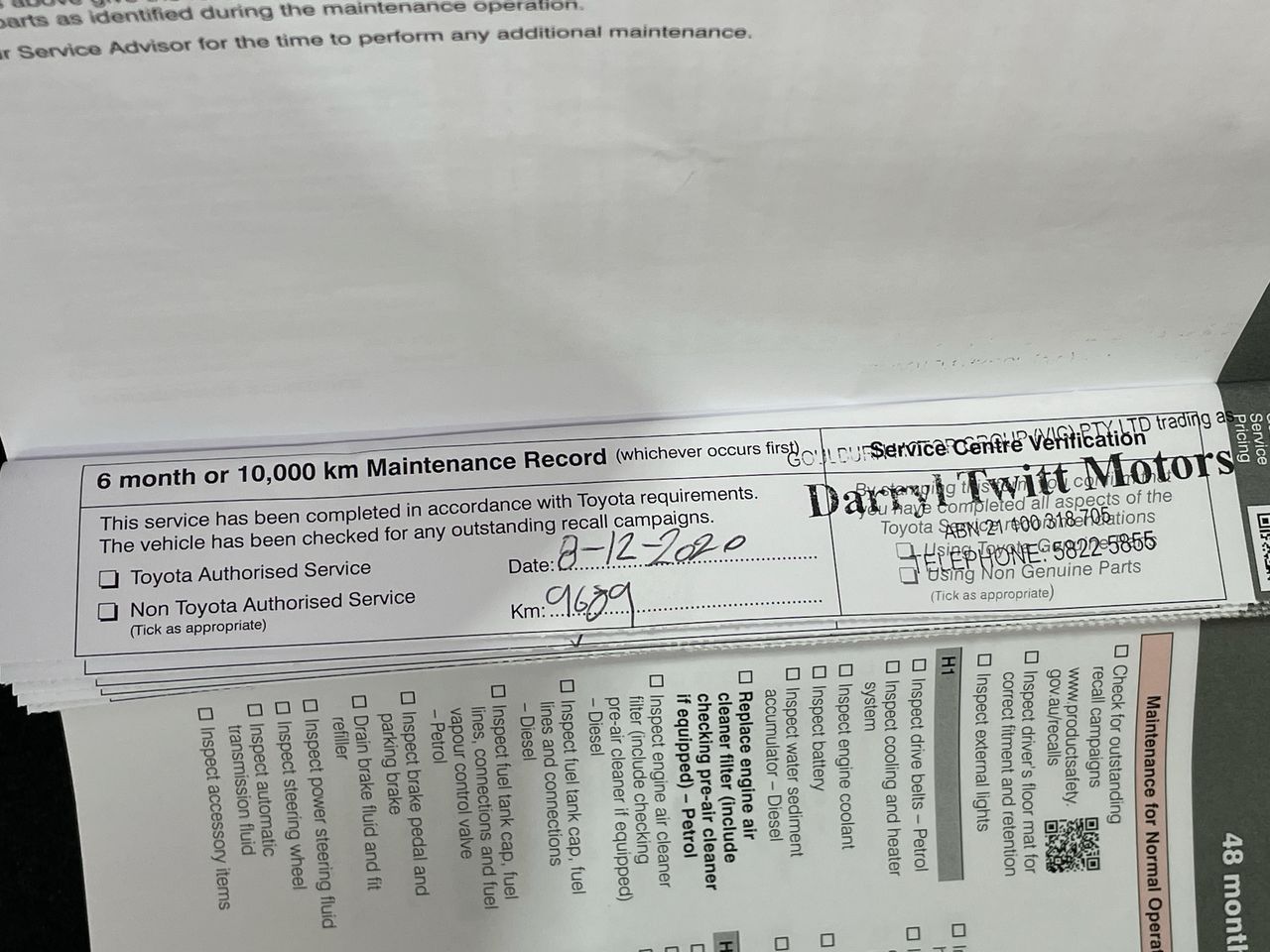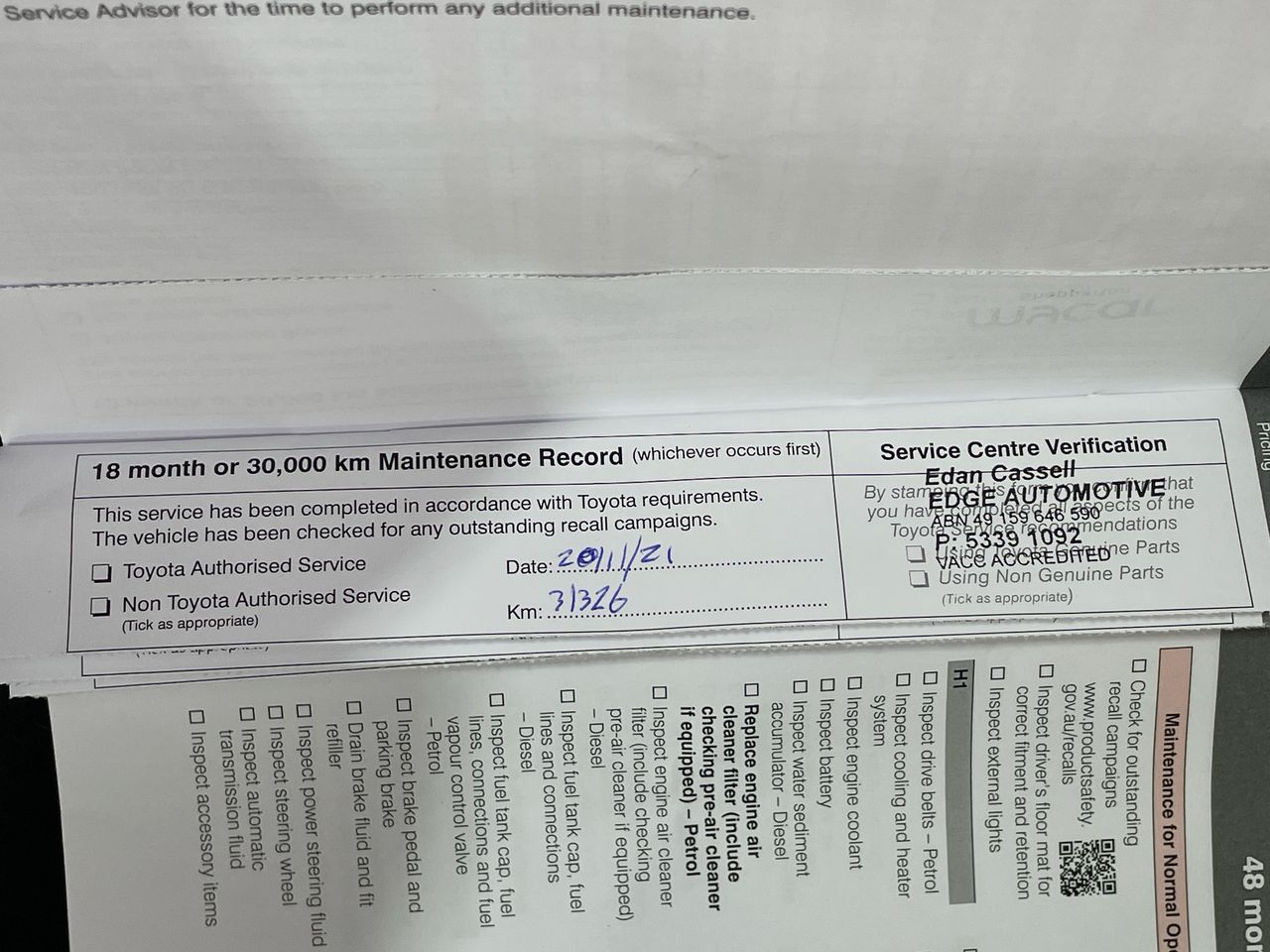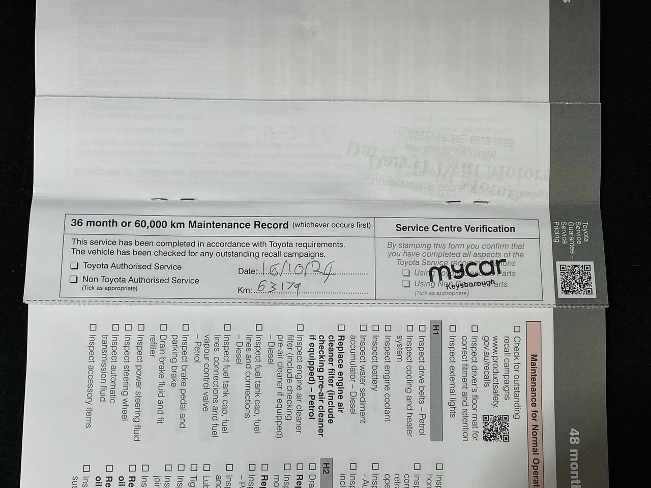 • Dents or marks on body consistent with age and kilometres.
