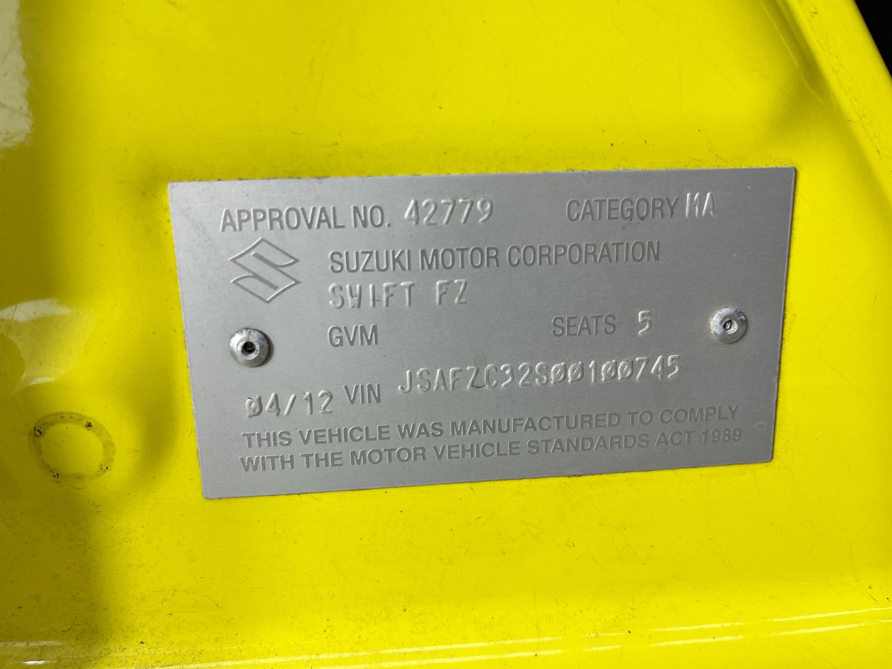 2012 Suzuki Swift Sport FZ CVT Hatchback
