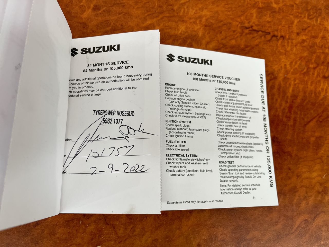 • Dents or marks on body consistent with age and kilometres.