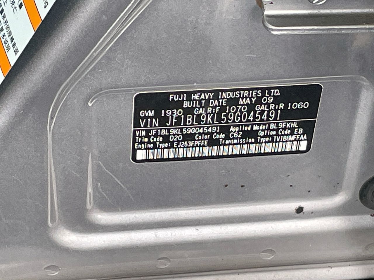 (SN:JF1BL9KL59G045491) (137632-287)