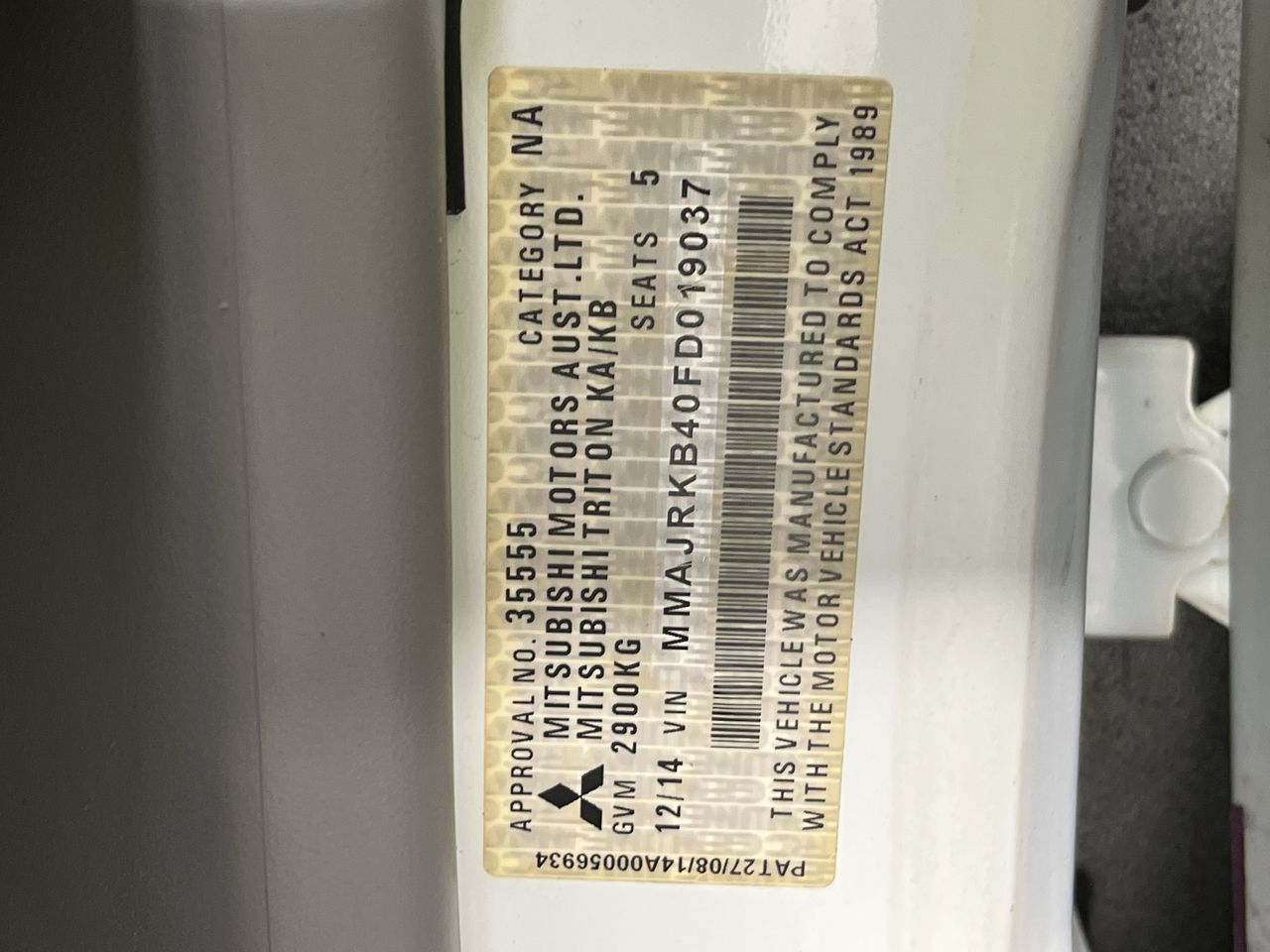 • VIN: MMAJRKB40FD019037