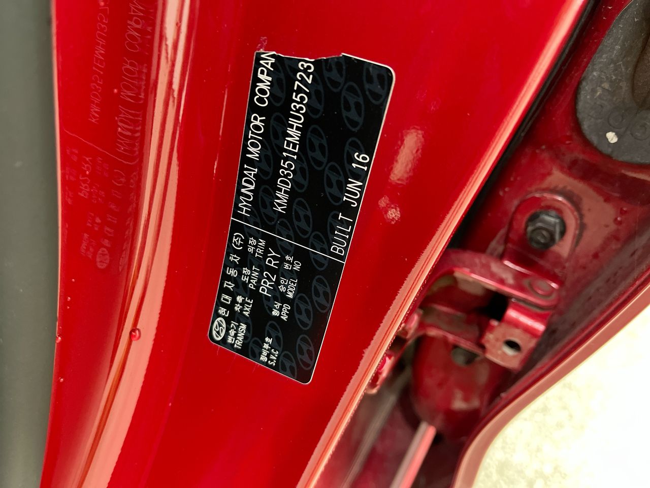 • VIN: KMHD351EMHU357236
